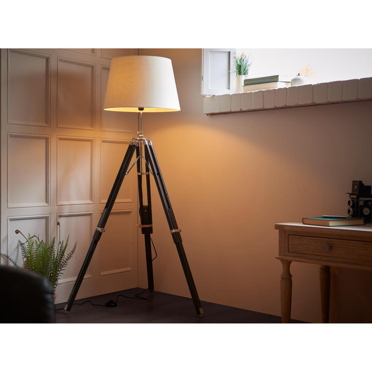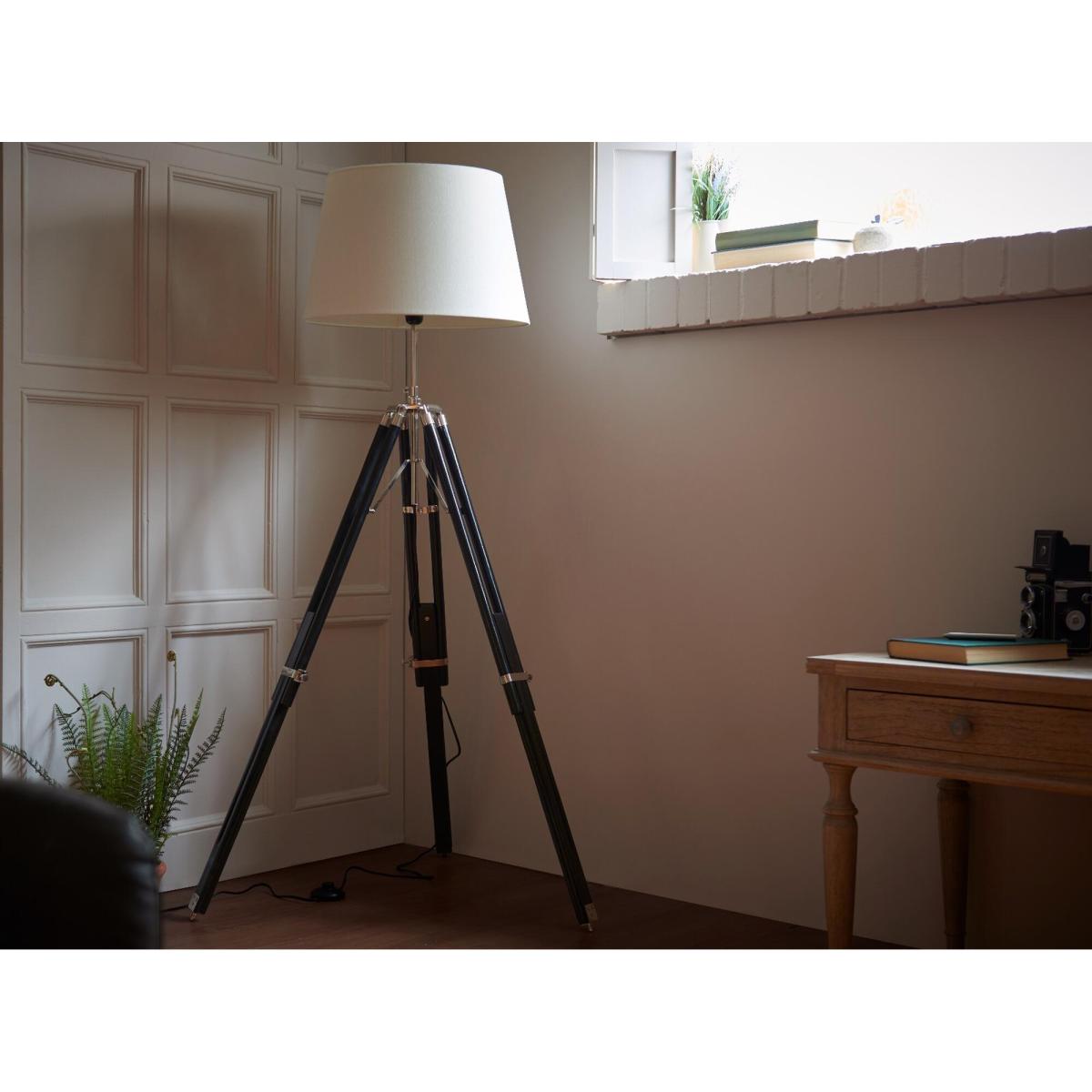 The Morgan Modern Black Tripod Lamp with 18' Linen Shade. Adjustable tripod legs: 69 to 144 cm. 45.5 cm diameter. EXPRESS DELIVERY. Perchandparrow.com Exclusive
