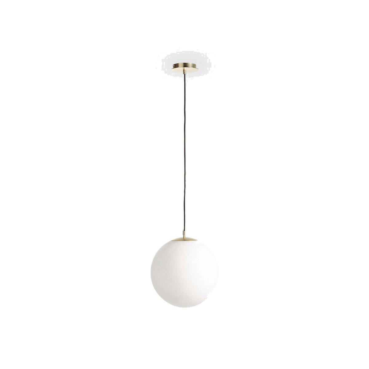 Inspired by the Art Deco trend. The Moricio pendant light is an exclusive creation signed by our in-house designers. This iconic and timeless light fixture is one of our customers’ favourites. Combining opaline sandblasted glass and brass-plated metal, its chic and sophisticated design evokes the 1930's. Refined and iconic. Product Details • Iron with brass finish • Opaline glass shade with matt finish • E27 socket for 8W max LED bulb. Not supplied • This light fixture is compatible with energy class A lightbulbs. Dimensions • Height: 132cm • Diameter: 30cm. Dimensions and weight of parcel1 parcel • 37 x 37 x 38cm • 2.1kg