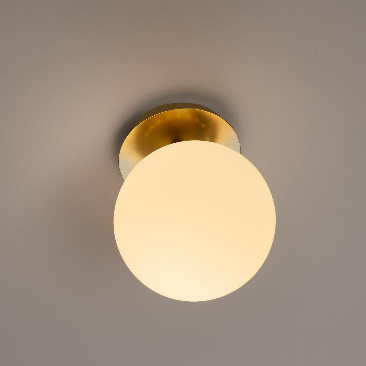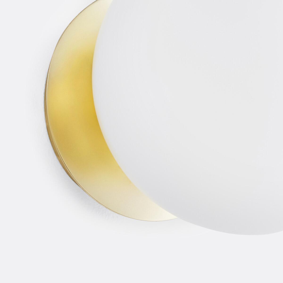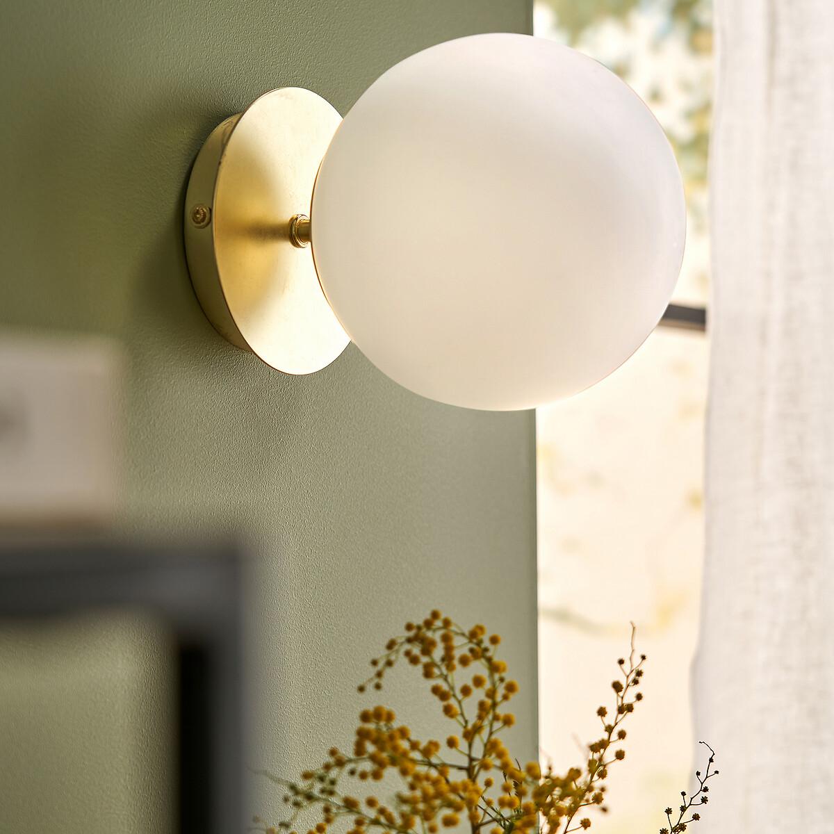 Inspired by the Art Deco trend. The Moricio wall light is an exclusive creation signed by our in-house designers. This iconic and timeless light fixture is one of our customers’ favourites. Combining opaline sandblasted glass and brass-plated metal, its chic and sophisticated design evokes the 1930's. Refined and iconic. Product Details • In brass-finish iron • Matte opaline glass globe shade • E14 socket for compact fluorescent bulb 8W max (not included) • Compatible with energy class bulbs: A Dimensions • Diameter: 15cm • Depth: 19cm. Dimensions and weight of parcel1 parcel • L21 x H29 x D21cm. 0.9kg.