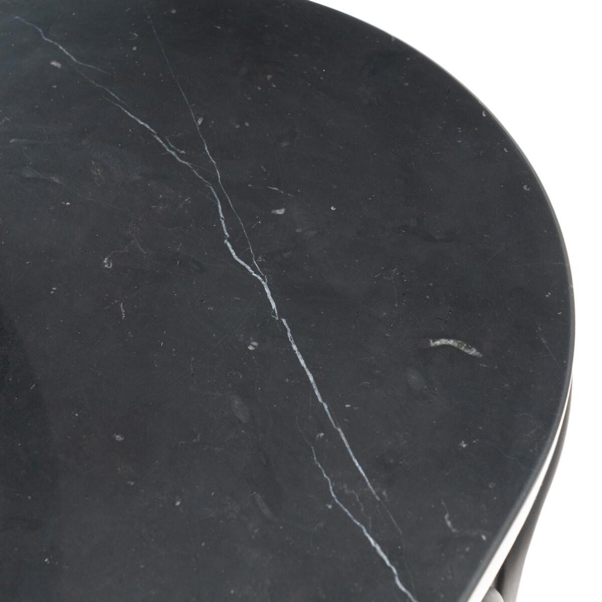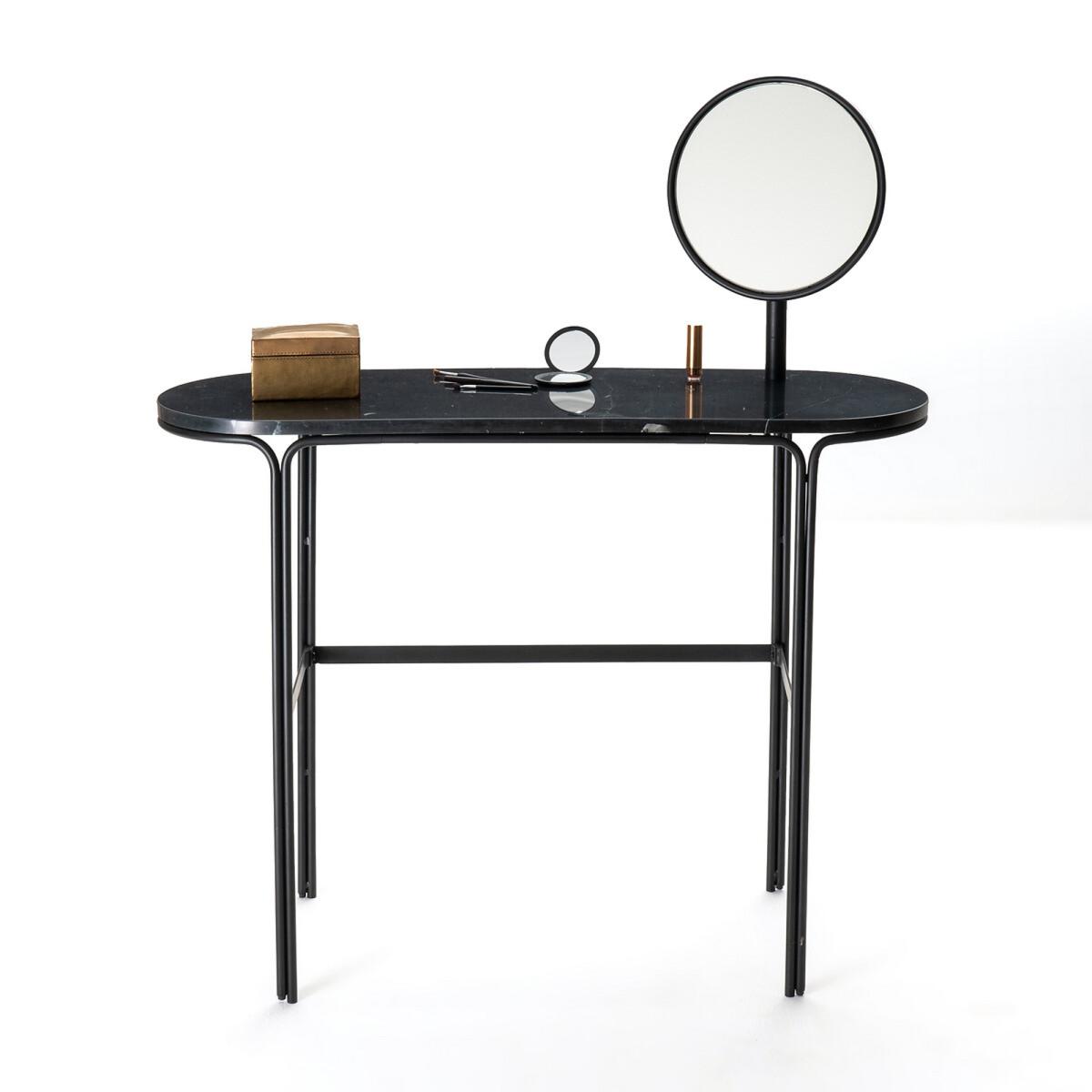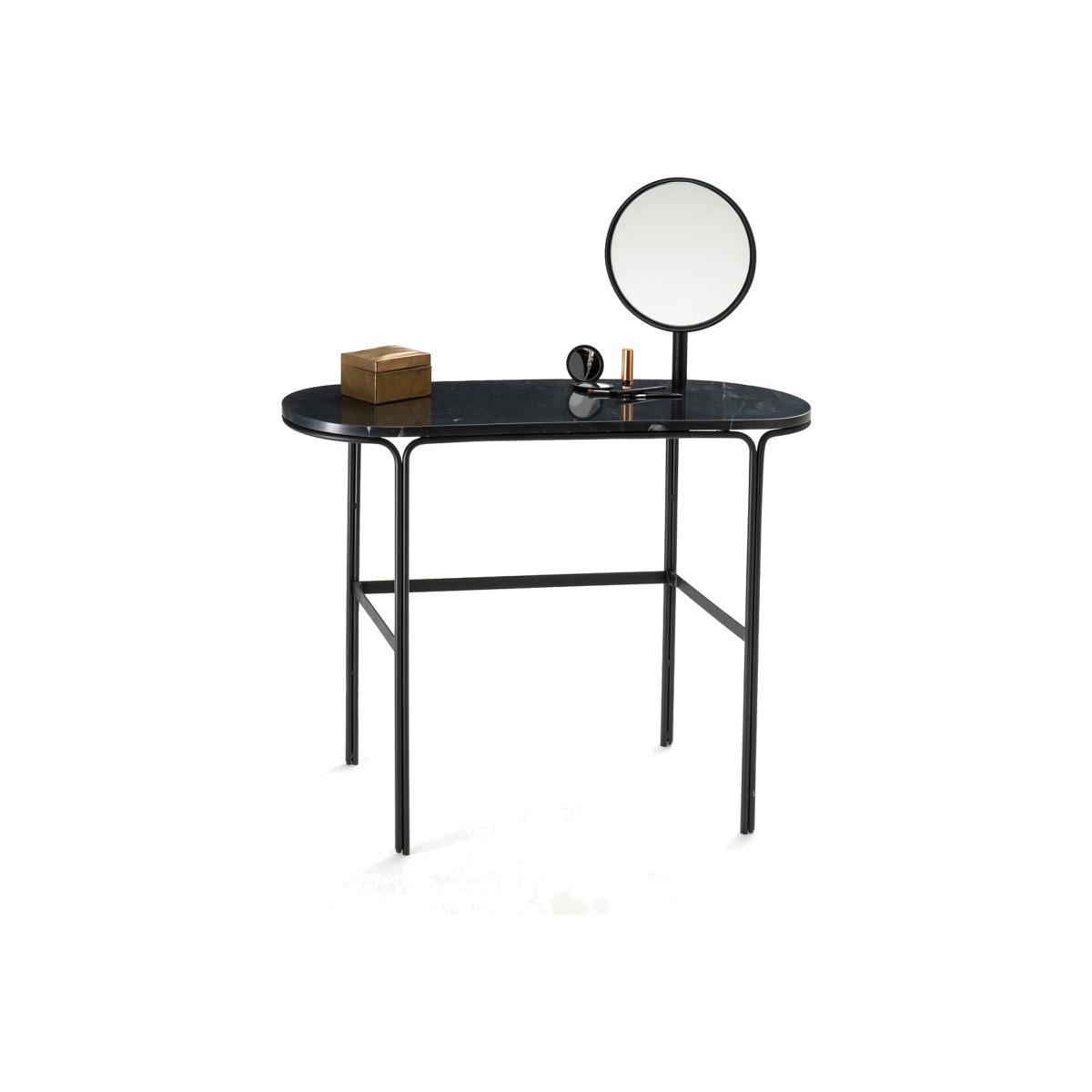 With rounded curves and soft edges, the shape of this dressing table contrasts with the strength of its materials. A smooth tubular metal frame supports a shiny marble top for a chic and elegant look!