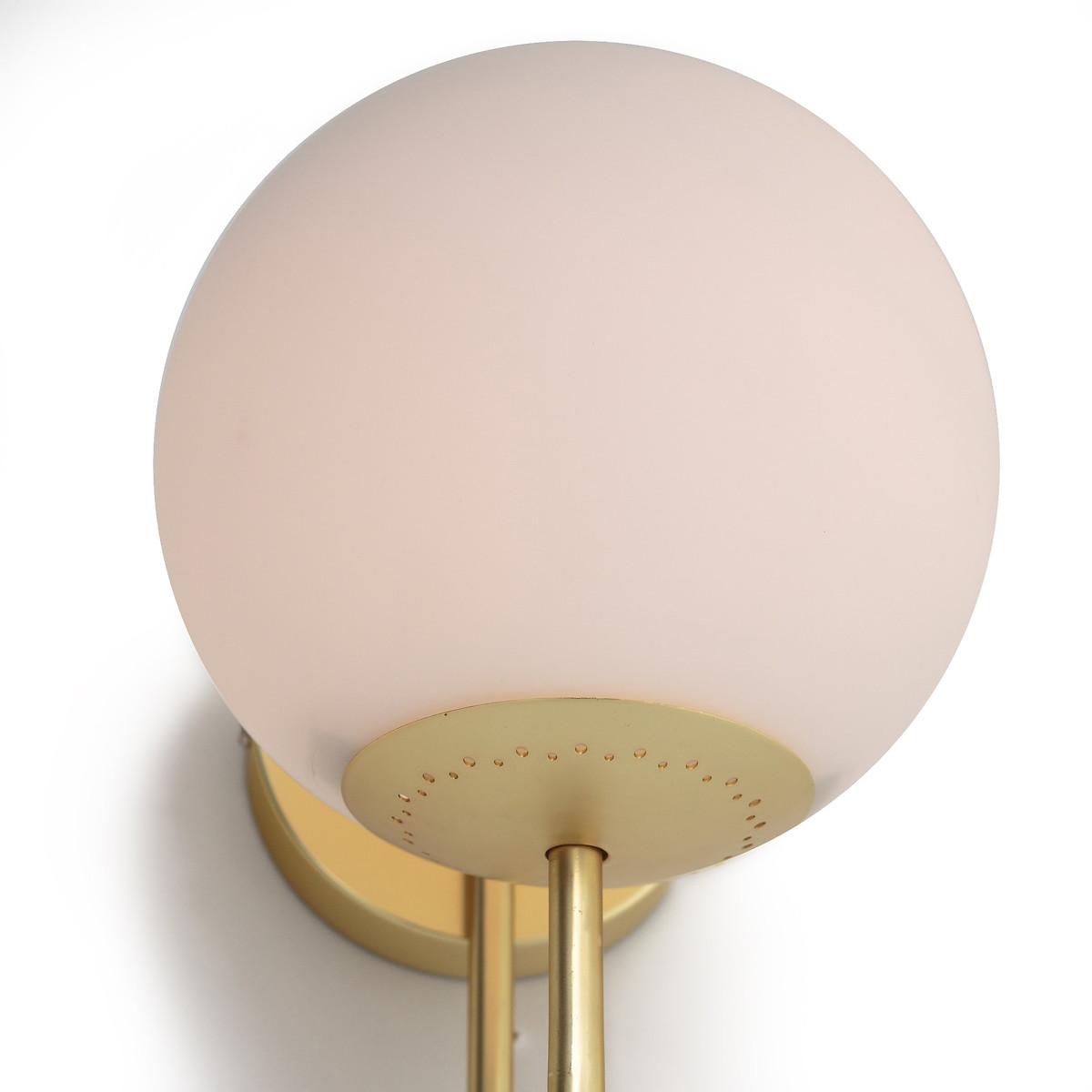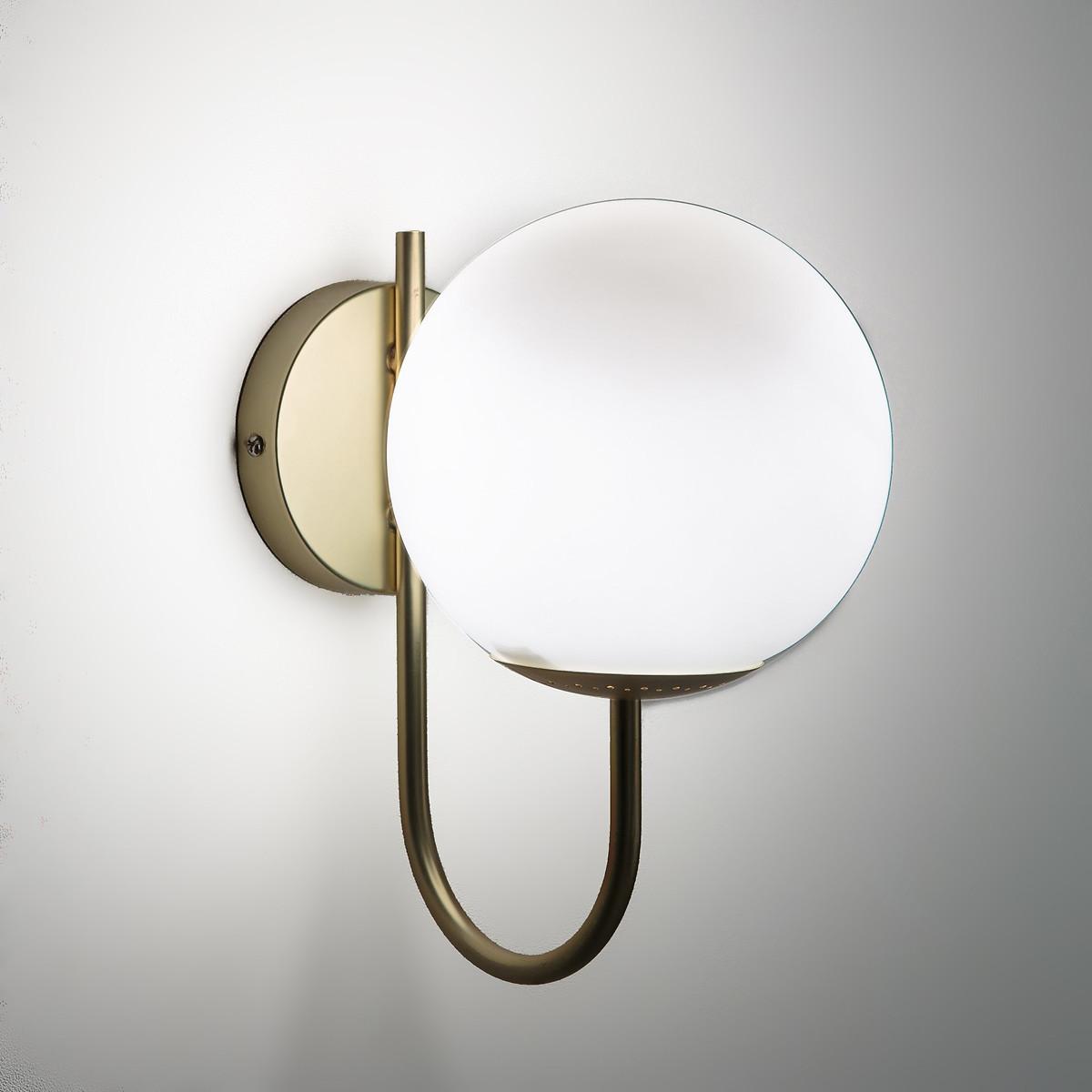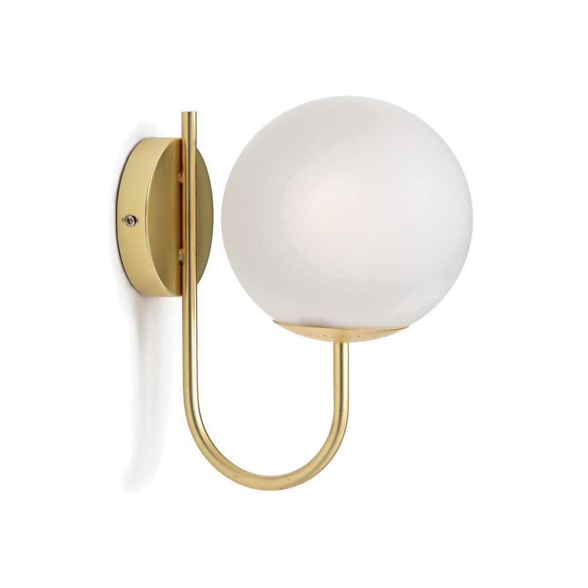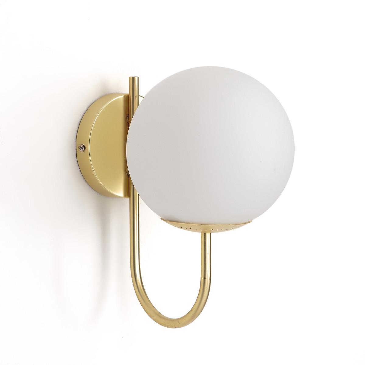 Inspired by the Art Deco trend. The Moricio wall light is an exclusive creation signed by our in-house designers. This iconic and timeless light fixture is one of our customers’ favourites. Combining opaline sandblasted glass and brass-plated metal, its chic and sophisticated design evokes the 1930's. Refined and iconic. Product Details • Iron with brass finish • Opaline glass shade with matt finish • E14 socket for compact fluorescent bulb 8W max (not supplied).Dimensions • Depth: 20cm • Height 25cm • width 15cm • Light shade diameter 15cm.