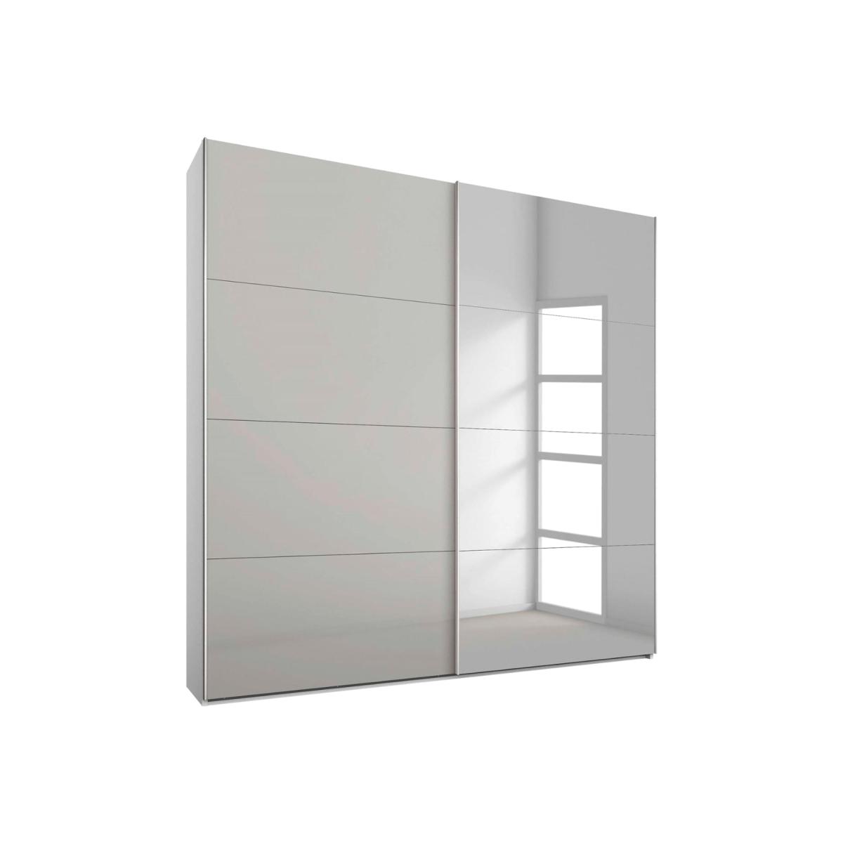 Design. The Moritz 2 door sliding wardrobe showcases clean lines and a contemporary high polish finish in soft grey and alpine white. Once sliding the door opens you will discover shelving compartments and hanging rails for you to store your clothes away neatly.
