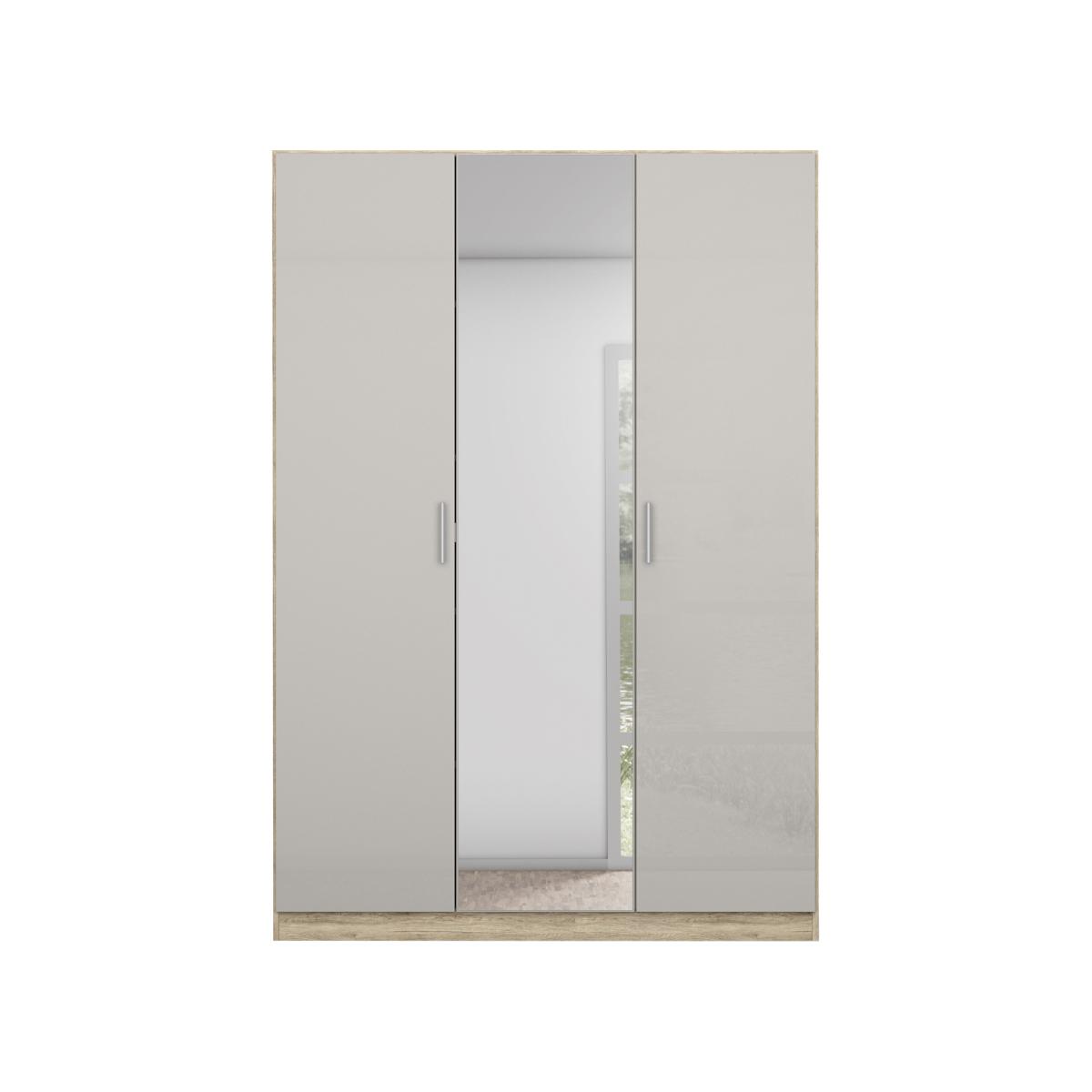 With a gorgeous Sanremo oak carcase, and a modern front consisting of two grey panels and a mirrored central panel, the Moritz 3 Door Hinged Wardrobe offers a sophisticated design that will enhance the look of your bedroom. With shelving space and hanging rails inside, you can keep you garments well organised inside the Moritz 3 Door Hinged Wardrobe.