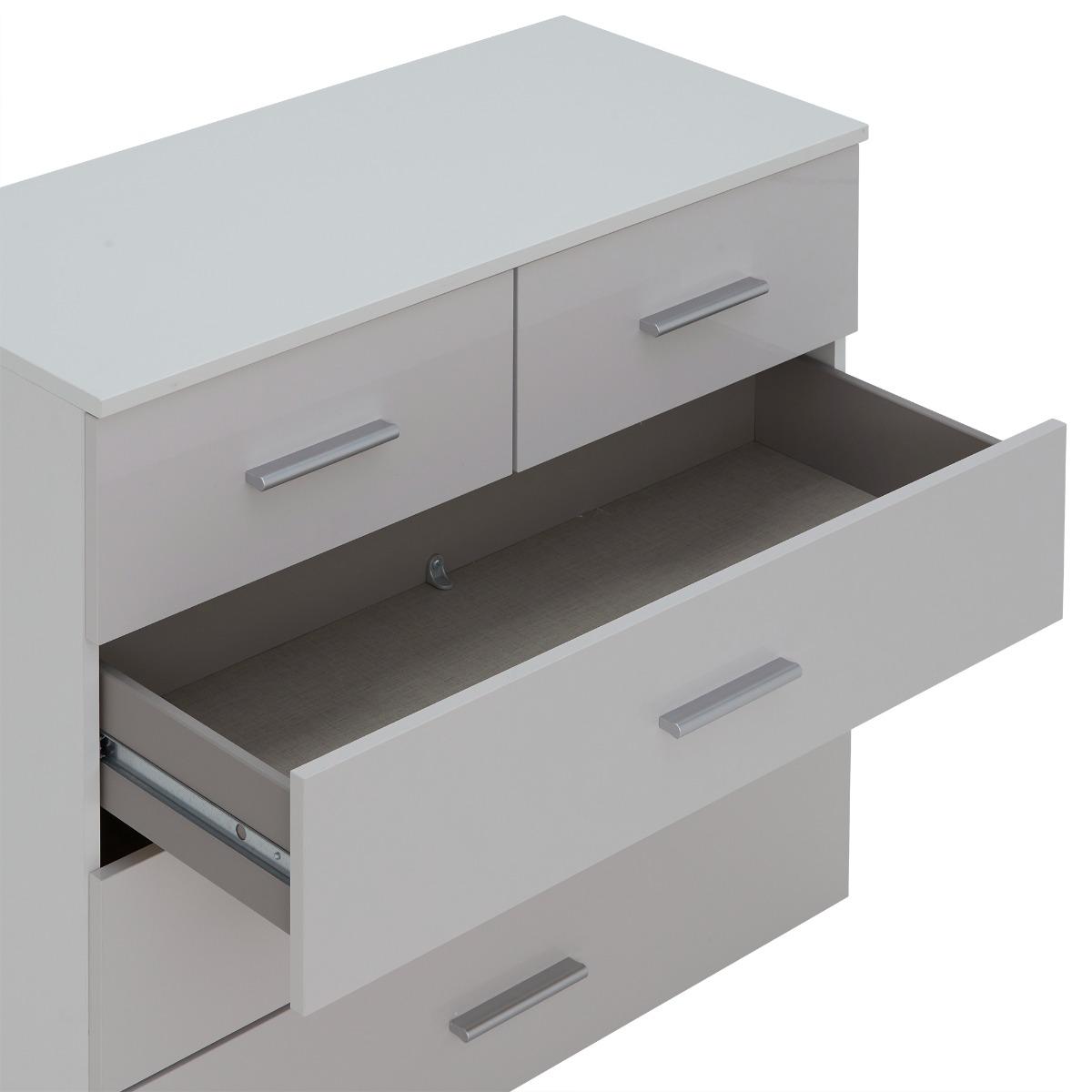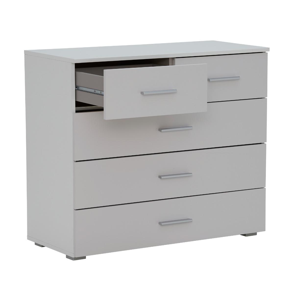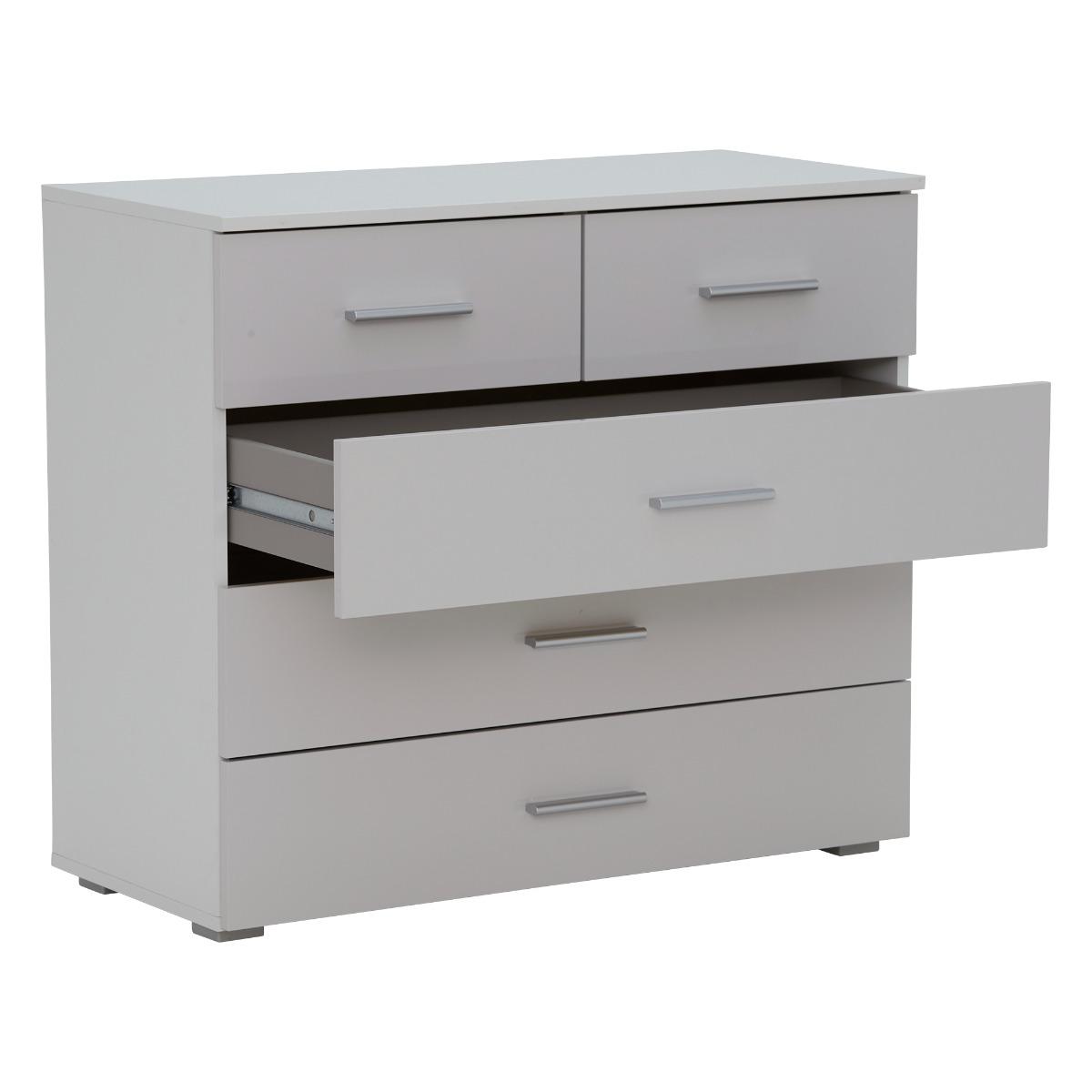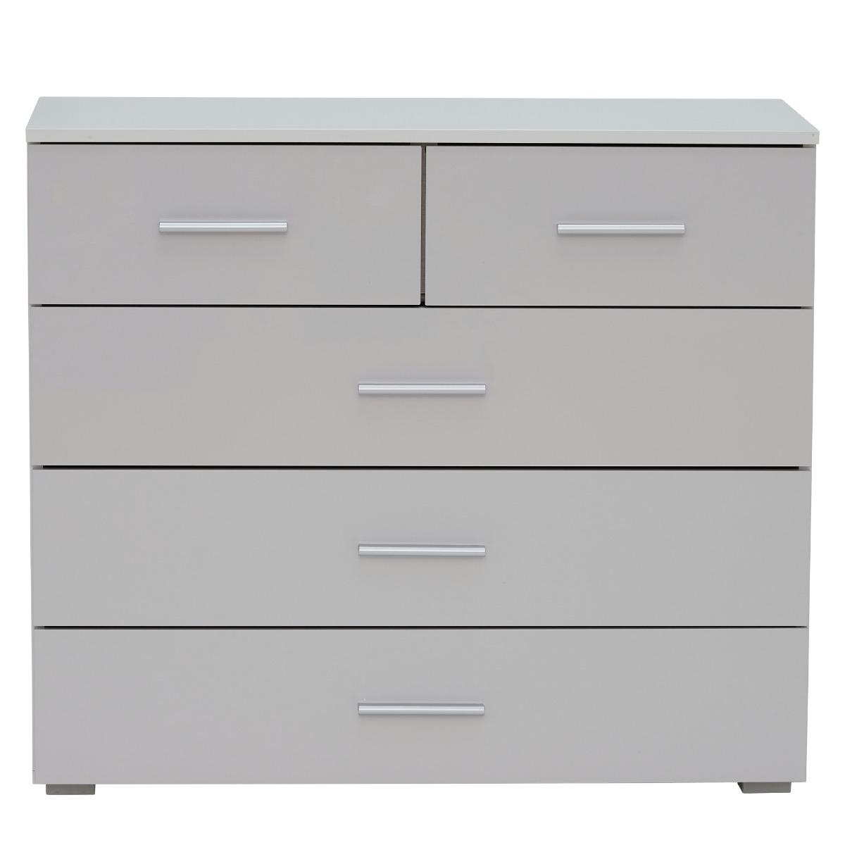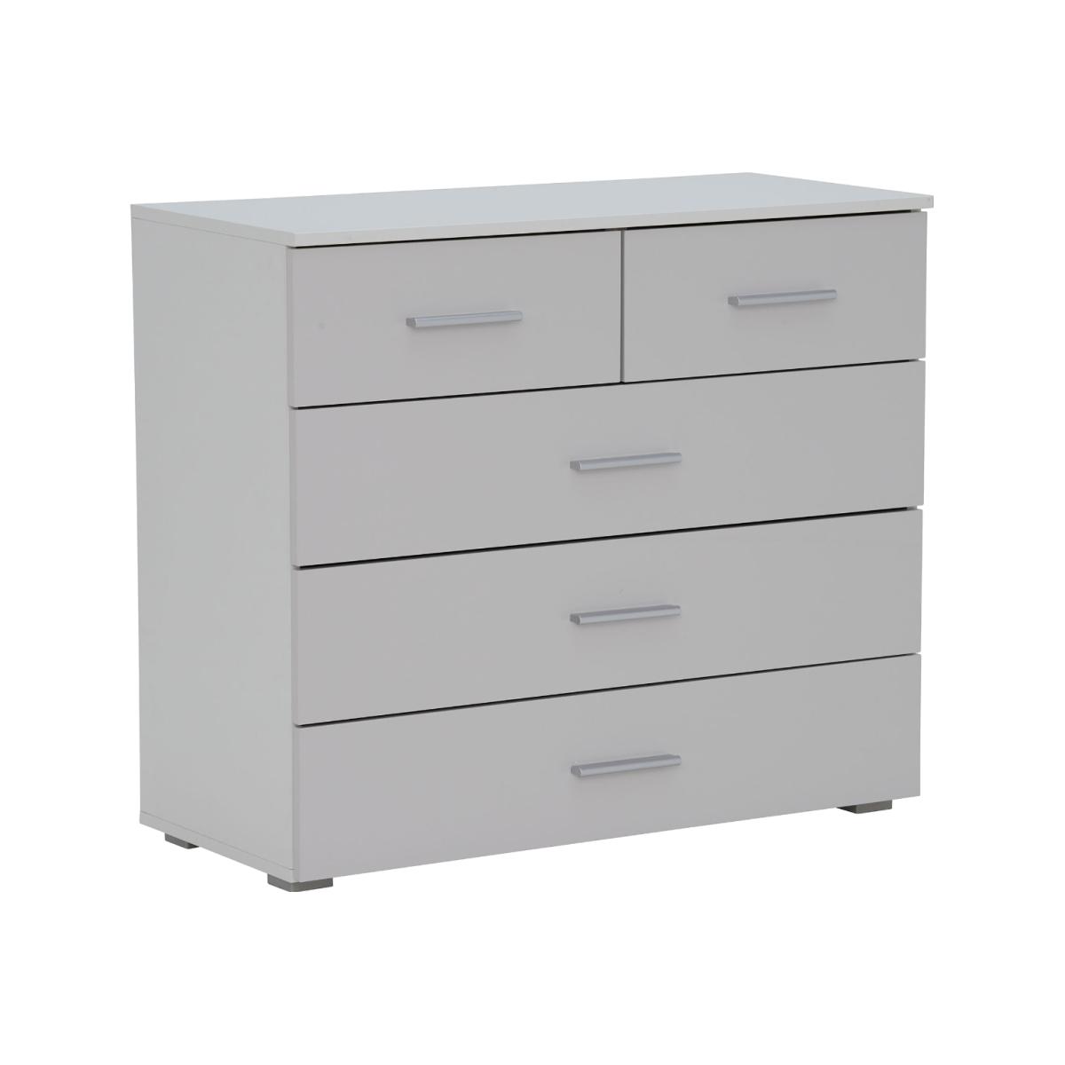 Moritz 5 Drawer Chest, Alpine White and High Polish Soft Grey Moritz 5 Drawer Chest, Grey Wood | Barker & Stonehouse