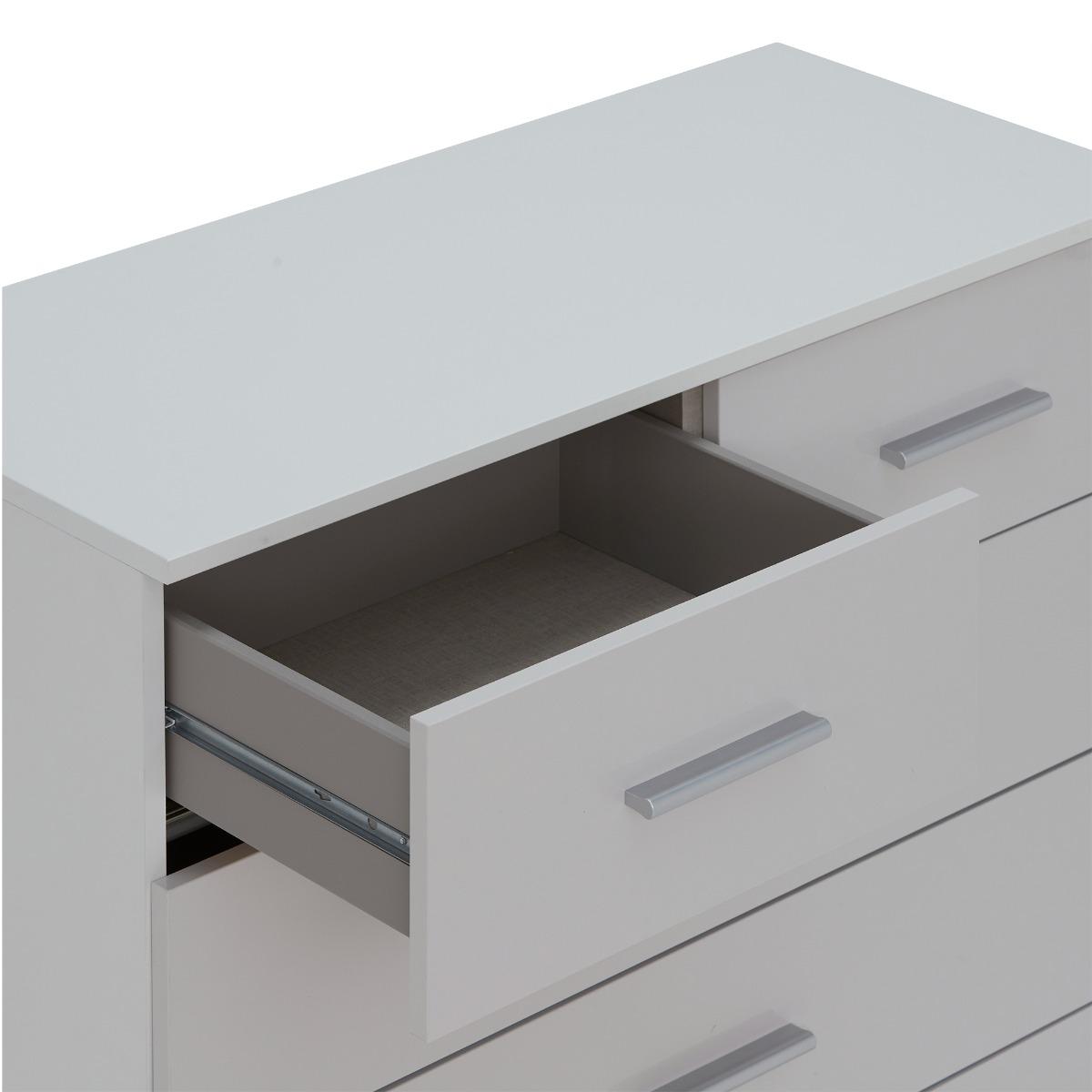 I like the Moritz chest in grey for its clean, unfussy shape and matt finish - it slots easily into contemporary, Scandi-inspired or coastal schemes. The neutral tone lets you layer in colour through accessories or keep things pared back with monochrome prints and soft linens. For styling, group a low table lamp with a small ceramic vase on one side and a stack of books or a tray on the other to maintain balance. Inside, use drawer dividers or fabric bins to keep clothes or office bits neatly organised.