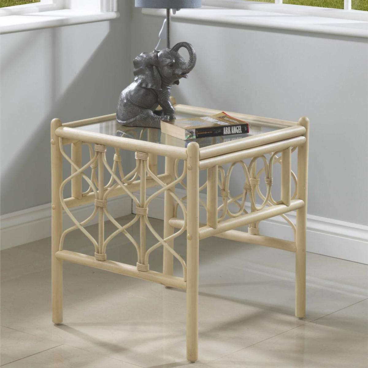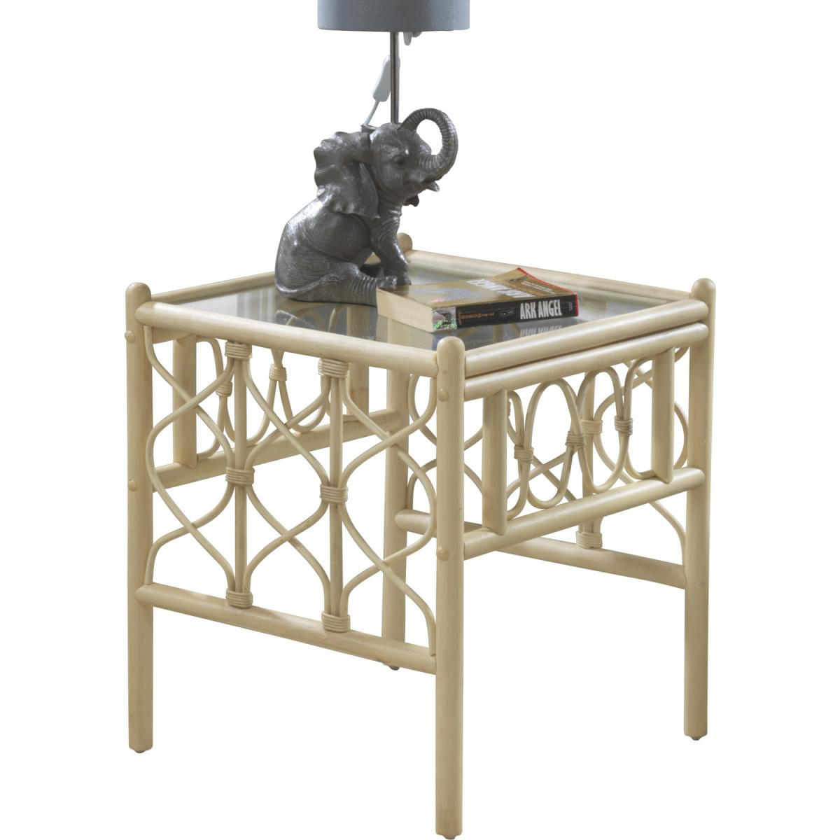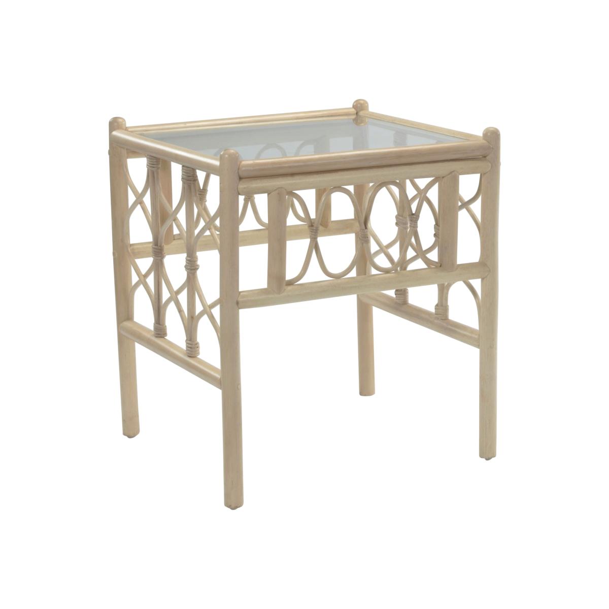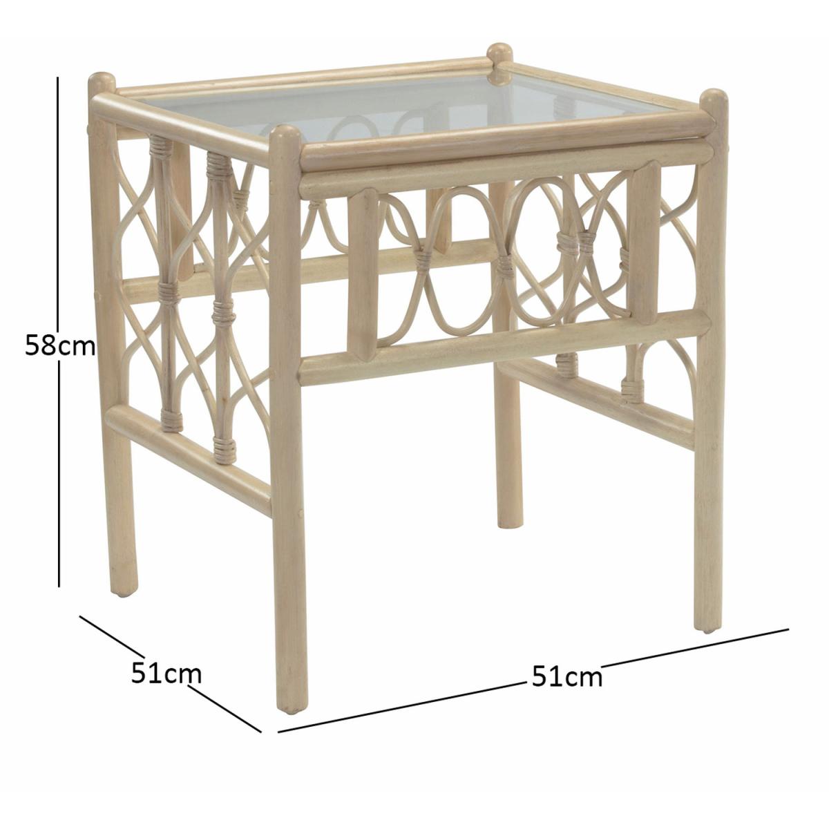 A sustainable natural rattan lamp table with 5mm toughened glass top and double pole frame structure