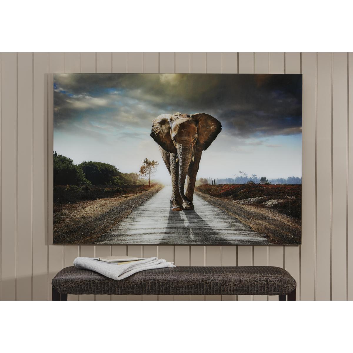 Under a magnificent morning sky, a solitary elephant embarks on his Morning March. The sheer scale of this piece evokes the peaceful majesty of its subject matter. Using the very latest technology this stunning photograph has been reproduced under a layer of glass, preserving and enhancing its beauty. Dramatic depiction of a majestic elephant. Stunning photographic image. Photograph has been reproduced onto 6mm toughened glass. Unique hanging mounts ensures it hangs perfectly flat. Large scale – a full 160cm wide. Ideal for a feature wall. The perfect piece for any nature lover. Dimensions. Width: 160cm (63 inches). Depth: 2cm (0.5 inch). Height: 110cm (43inches).