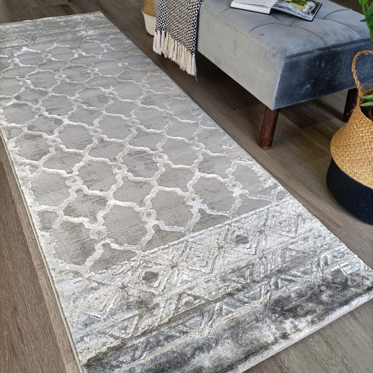 Moroccan Tiled Shimmering Tufted Living Room Rug - Silicily - Grey / 4kg / 5kg