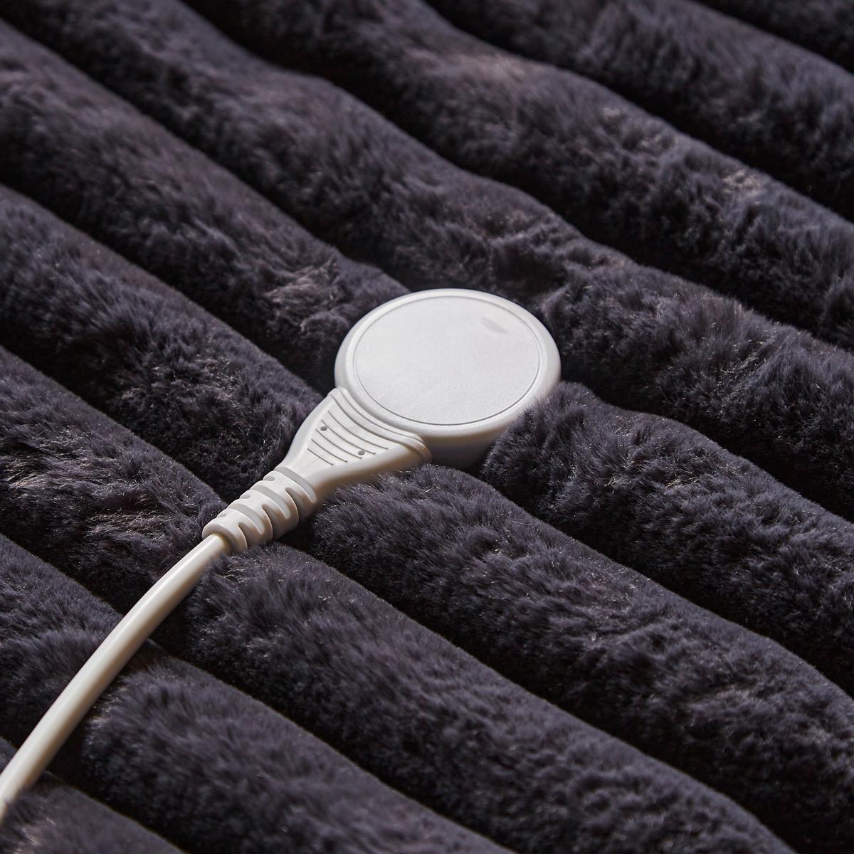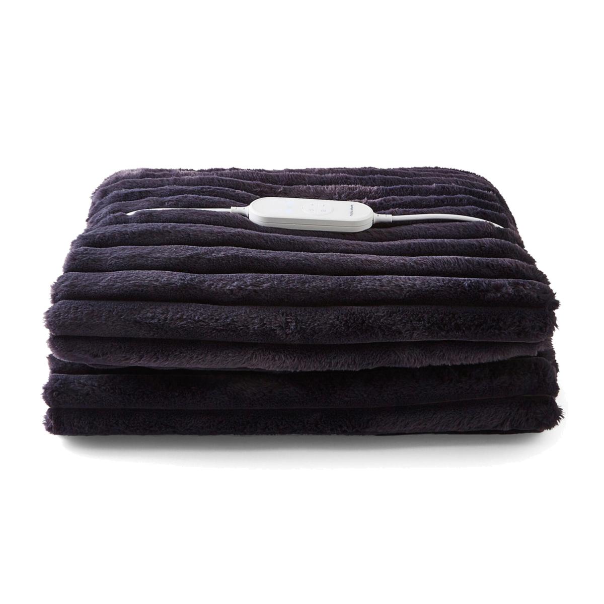 Morphy Richards Flannel Fleece & Striped Faux Fur Throw in Blue, Large