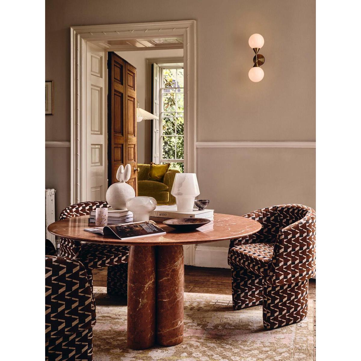 I love this chair for its bold, geometric fabric that adds visual interest without overpowering a space. It works particularly well in eclectic, mid-century modern, or luxe interiors where statement pieces are key. The Phoebe Jacquard is versatile enough to sit comfortably at a formal dining table or as an accent in a lounge area. Practical styling tips include pairing it with neutral-toned surroundings to let the pattern pop, or mixing it with similarly textured textiles for a layered look. Its sturdy frame and eye-catching fabric make it a great choice for those seeking both style and durability.