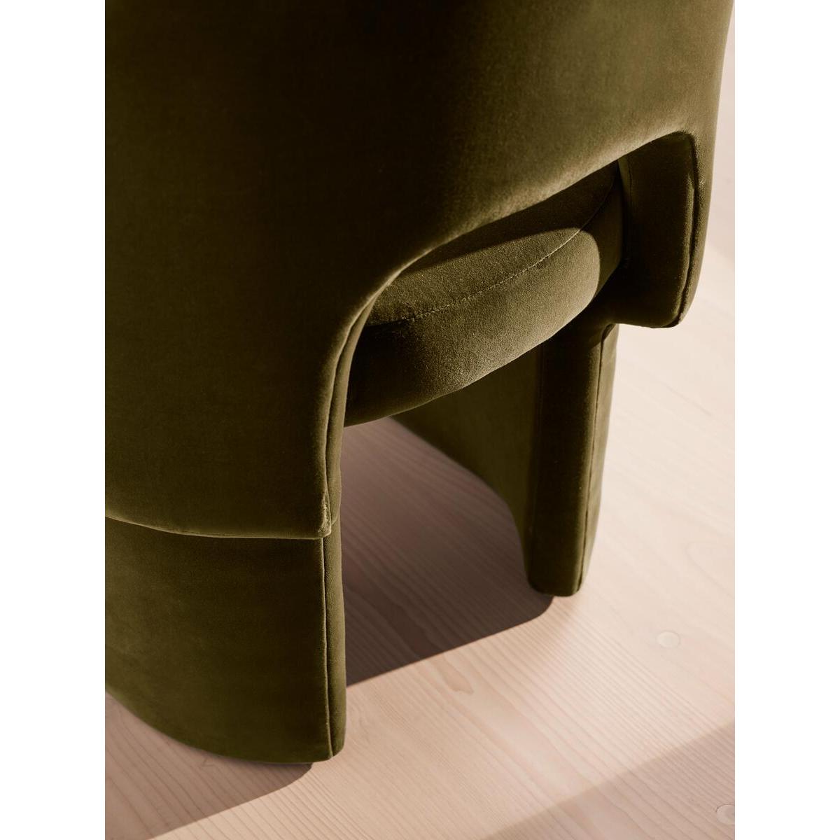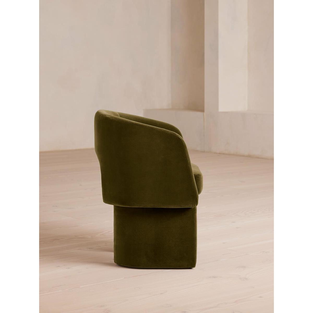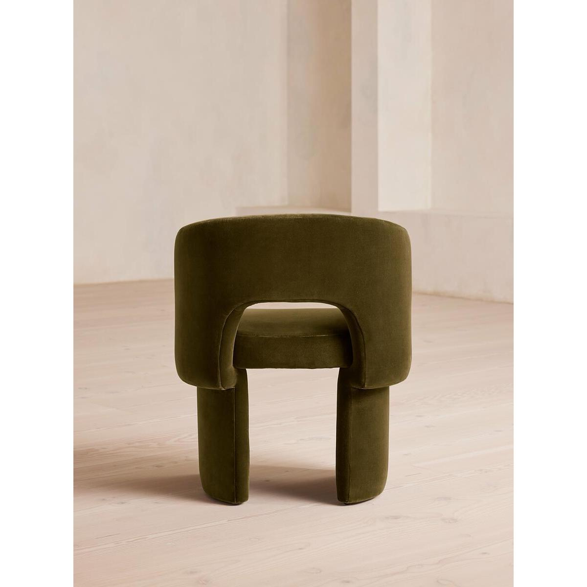 Upholstered in smooth velvet, our Morrell dining chair recalls the rich textures seen in the lounge spaces at 180 House. The chair's tub silhouette provides additional comfort at the table, while the contemporary cut-out back and angular legs bring a touch of playfulness. This versatile piece works well in any setting, such as a dining room or dressing room. House-style tub dining chair Cut-out back Angular legs Fully upholstered in cotton velvet Inspired by 180 House