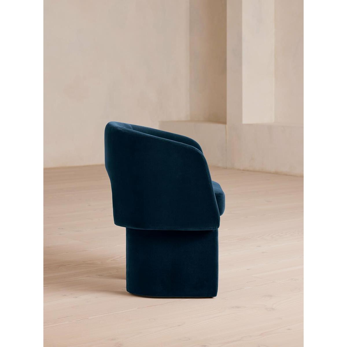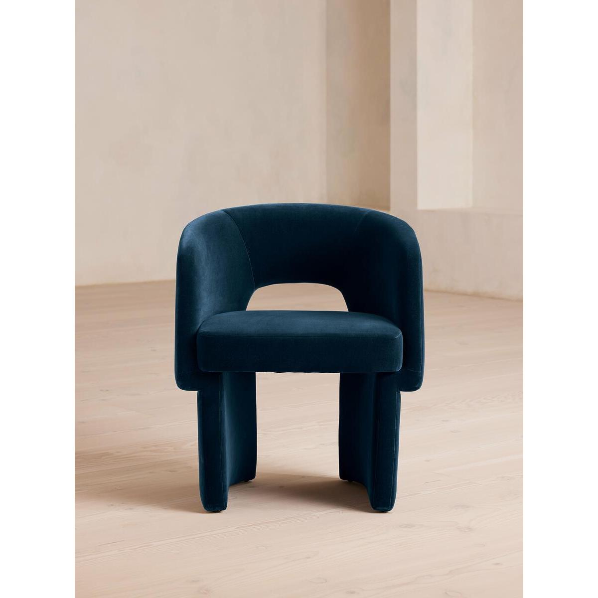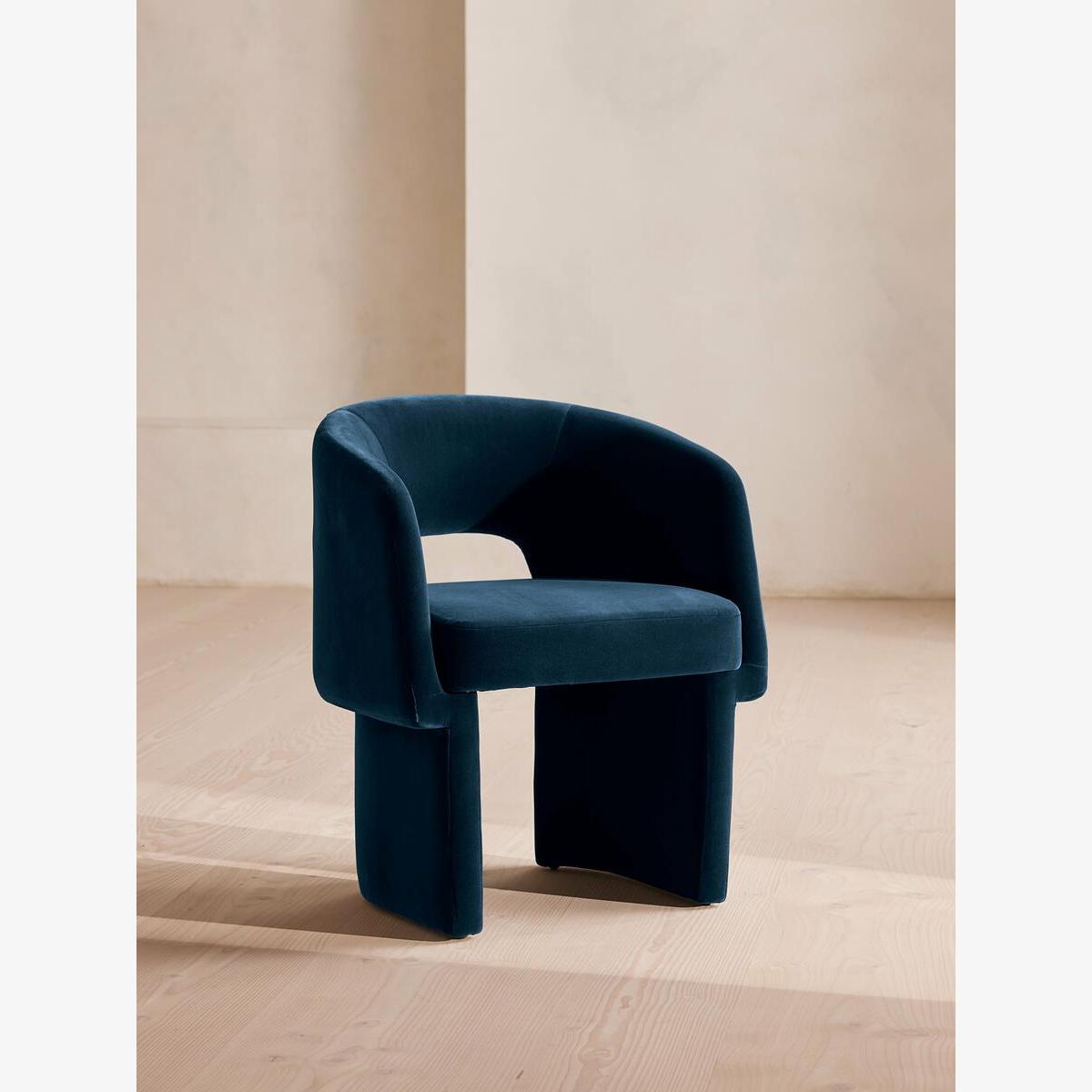 The Morrell dining chair in velvet is a striking piece that immediately elevates any interior. I love its bold royal blue hue, which works beautifully in both contemporary and more traditional spaces, adding a pop of colour without feeling overwhelming. Its rounded silhouette and plush velvet finish make it a comfortable yet stylish addition to dining rooms or as an accent piece in living areas. To style effectively, consider pairing it with neutral-toned tables and accessories to let the chair stand out - but it also works well paired with metallic accents or patterned textiles for a more eclectic look. It's practical too; the velvet finish makes it inviting, though I’d recommend using a fabric protector to keep it looking pristine over time.