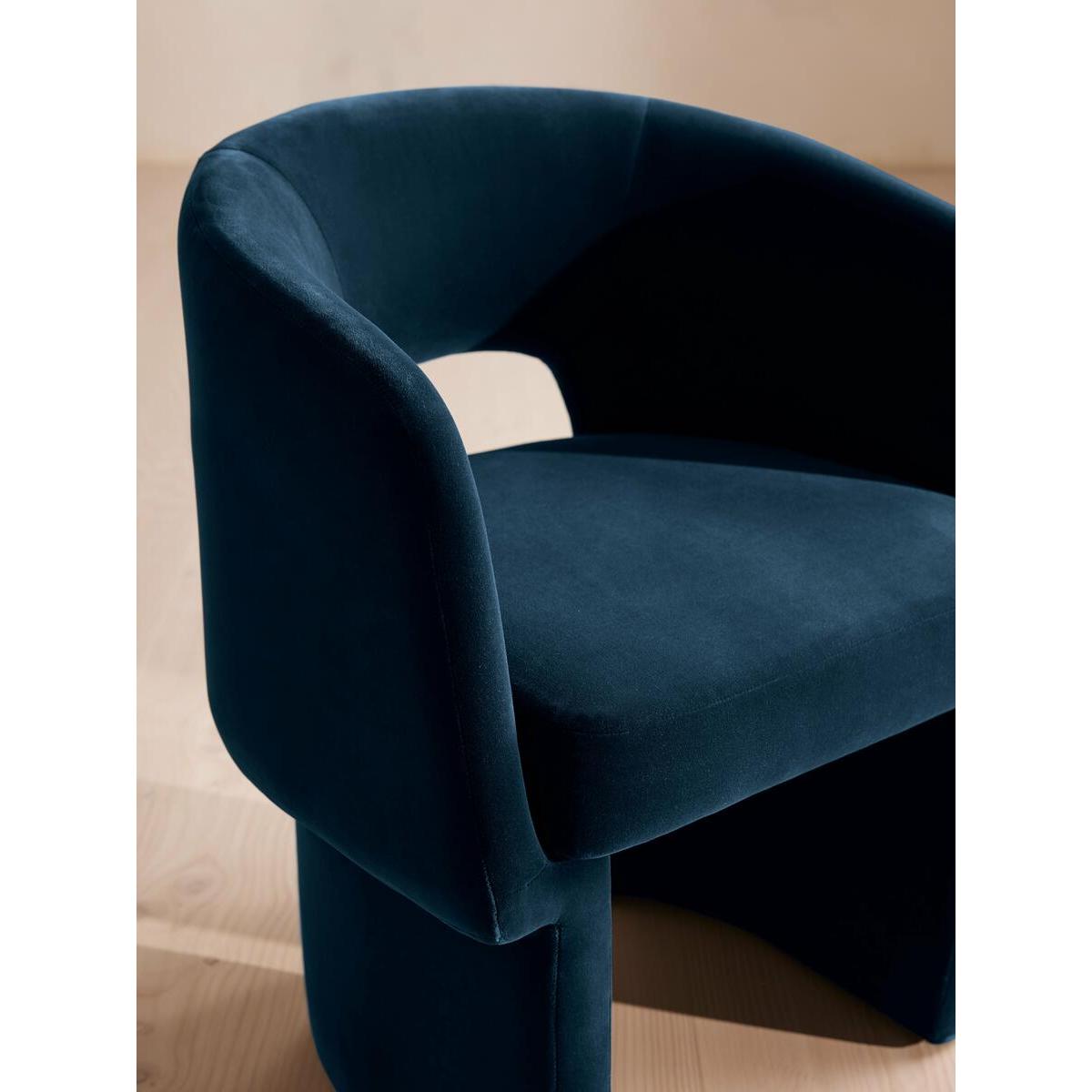 Upholstered in velvet, our Morrell dining chair recalls the rich textures seen in the lounge spaces at 180 House. Designed with a cut-out back and curved lines creates a sculptural effect, while offering comfort and support for you and your guests. A style seen around our Houses, add to your dining arrangement for a contemporary feel with a classic House twist. Tub-style dining chair Sculptural curved design Cut-out back Fully upholstered in velvet Inspired by 180 House