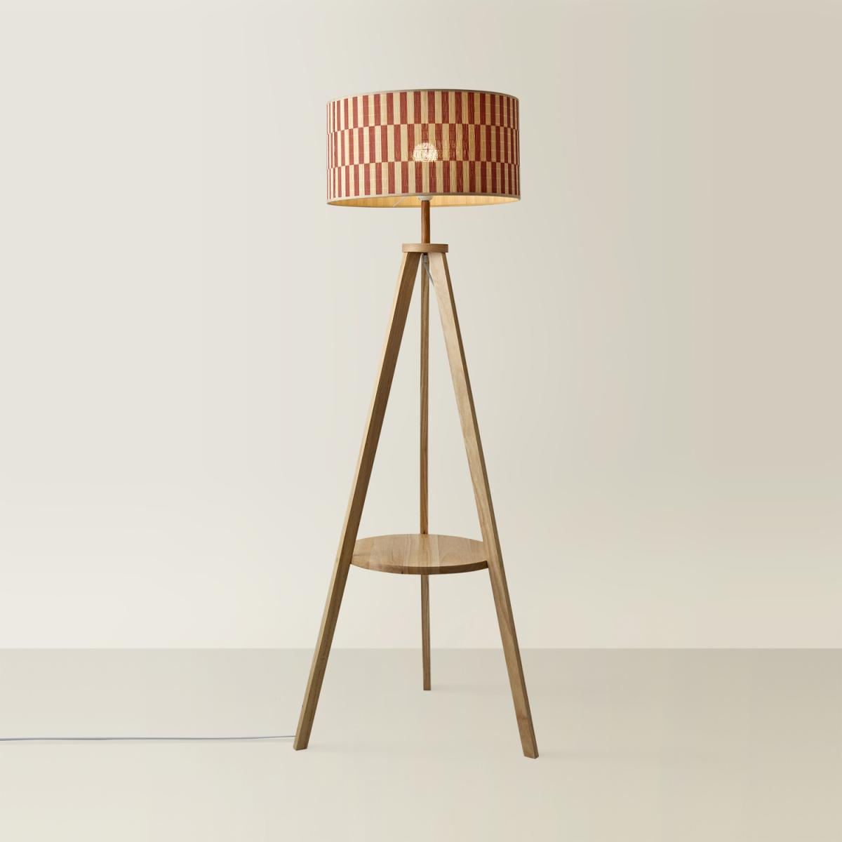 Who doesnt love a cheeky 2-for-1 The Morrigans a beauty of a tripod lamp with a built-in shelf, perfect for your fave book, a plant, or showing off your space-saving skills. Its natural wood and vintage telescope vibes bring cosy coastal charm to any room. Topped with an orange bamboo shade in a woven checkerboard pattern, its got all the warm glow and cottage-core feels you could want. Stylish, clever, and just a bit show-offy, in the best way.