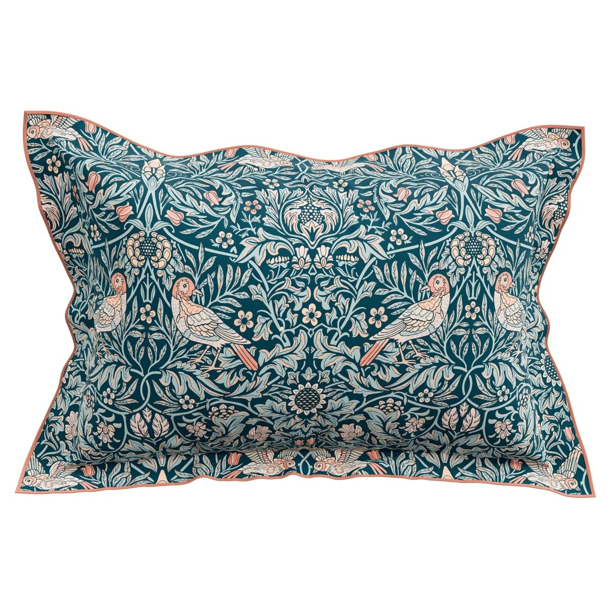 Transform your bedroom with the Morris & Co Bird Webbs Duvet Cover Set in Blue, featuring a beautiful and intricate bird and foliage pattern that adds a touch of classic elegance to your space. Paired birds alternate between perched and in-flight in this serene 1878 tapestry design from William Morris. The Webb's Blue colourway, named after the close architect friend of William Morris, Phillip Webb, is a deep tone that features surprising bursts of rich hues. Made from 100% BCI cotton percale and with a luxurious 220 thread count, Bird is a wonderfully sophisticated choice for any bedroom scheme in need of an Arts & Crafts touch. Features: 220 thread count 100% cotton Single Duvet Includes Single Pillowcase Double, King and Superking Size Duvet Includes Pair of Pillowcases Care Instructions: Machine Washable Please note All screens vary in colour reproduction and whilst every effort has been made to display the colour as accurately as possible it is for guidance only.