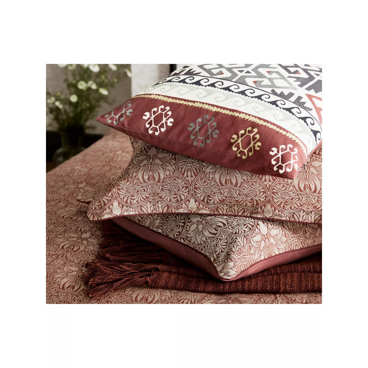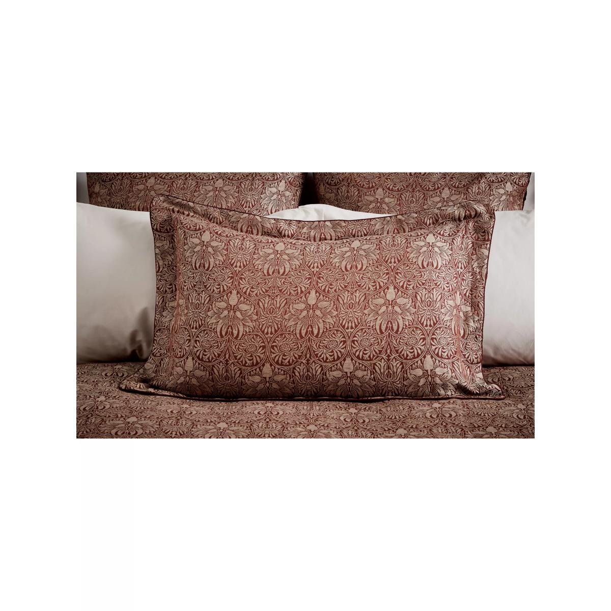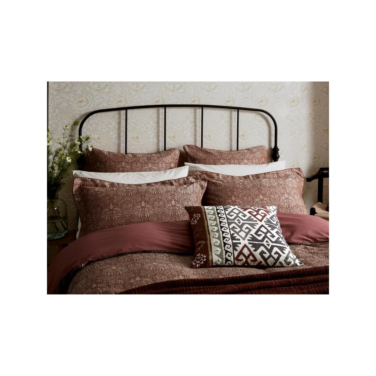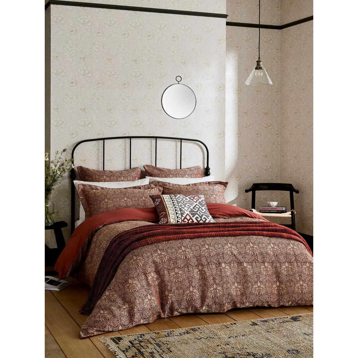 Designed in 1876, Crown Imperial is one of the most sophisticatedly formal patterns in the Morris & Co. repertoire. The intricate floral and trellis design is woven across this sumptuous Jacquard cotton-linen blend. Set against the soft neutral and reddish tones of Madder Red, the colour harks back to the organic plant dyes used to create warming red hues during William Morris's time. Please note that duvet covers and pillowcases are sold singly and not in sets. Bedding sizes To fit duvet/pillow size (cm) Oxford pillowcase to fit 50cm x 75cm excluding frill Single duvet cover to fit 135cm x 200cm Double duvet cover to fit 200cm x 200cm Kingsize duvet cover to fit 225cm x 220cm Super kingsize duvet cover to fit 260cm x 220cm