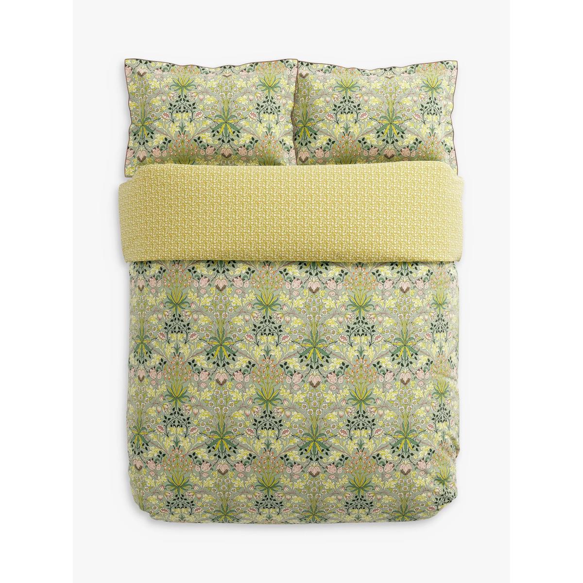 Entwining foliage and flower motifs in a mirrored pattern repeat. Features Morris branded buttons along the bottom of the duvet cover. The single set contains one Oxford pillowcase. All other sizes contain two Oxford pillowcases. Bedding sizes To fit duvet/pillow size (cm) Oxford pillowcase to fit 50cm x 75cm excluding frill Single duvet cover to fit 135cm x 200cm Double duvet cover to fit 200cm x 200cm Kingsize duvet cover to fit 225cm x 220cm Super kingsize duvet cover to fit 260cm x 220cm