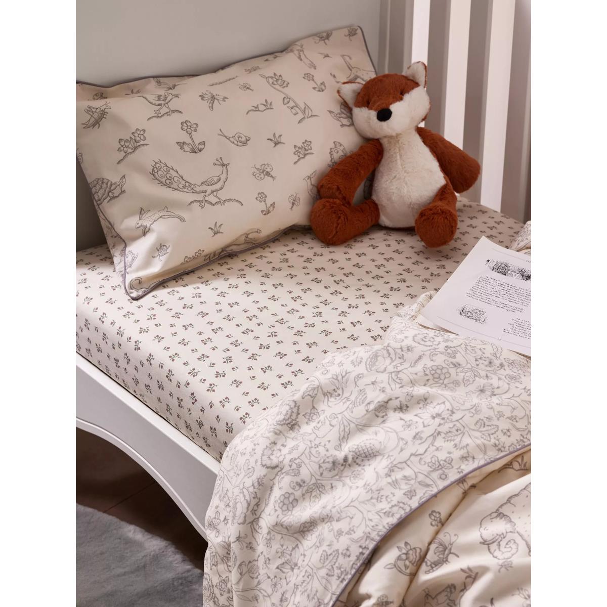 Morris & Co. Mid Floral Fitted Sheet, Beige, Cotbed (140 x 70cm)