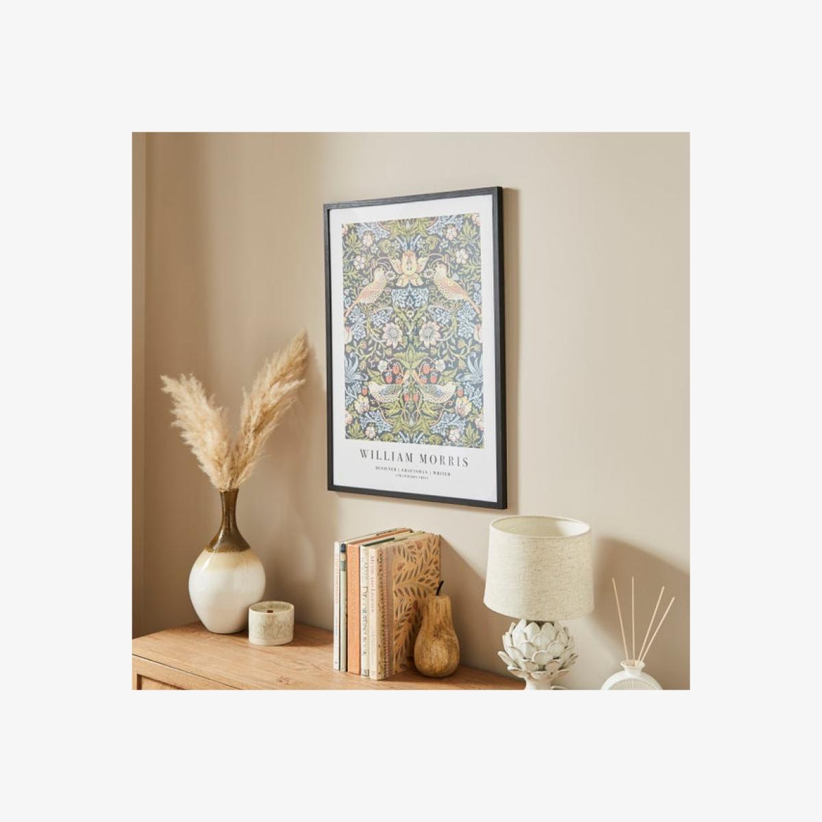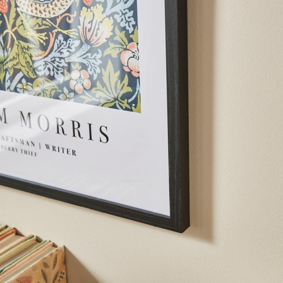 * William Morris 'Strawberry Thief' print * Perfect for country interiors * Framed print * Vintage style Celebrate a true design classic with the Morris & Co Strawberry Thief Framed Print. Showcasing the iconic motif in a rich colour palette, this piece is full of intricate detail and timeless appeal. Thecontemporary frame gives it a modern edge while keeping the focus on William Morris’ beloved pattern. Whether hung in a hallway or styled above a mantel, it adds instant character to your space. A beautiful way to bring heritage design into everyday living.