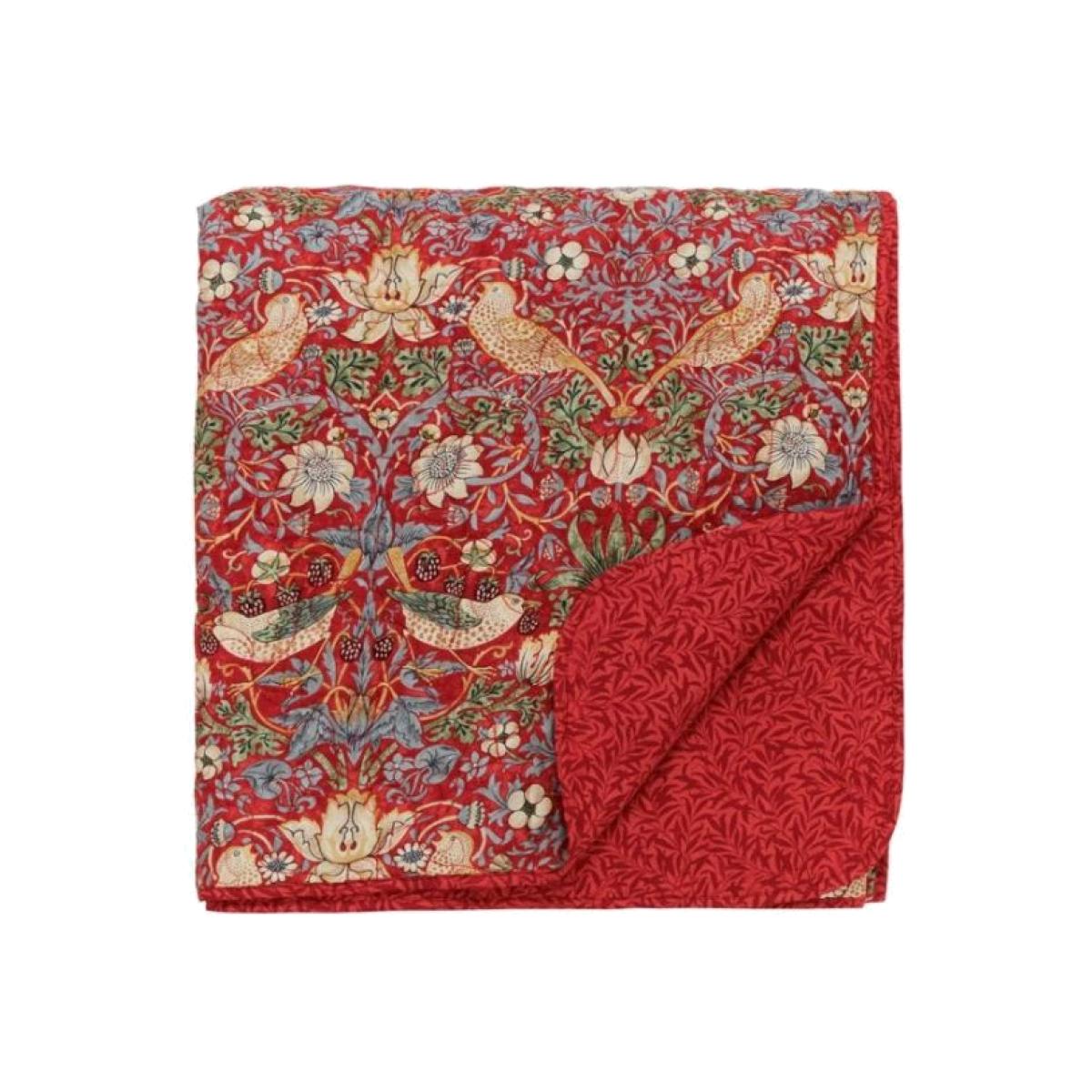 Morris & Co Strawberry Thief Quilted Throw - Crimson