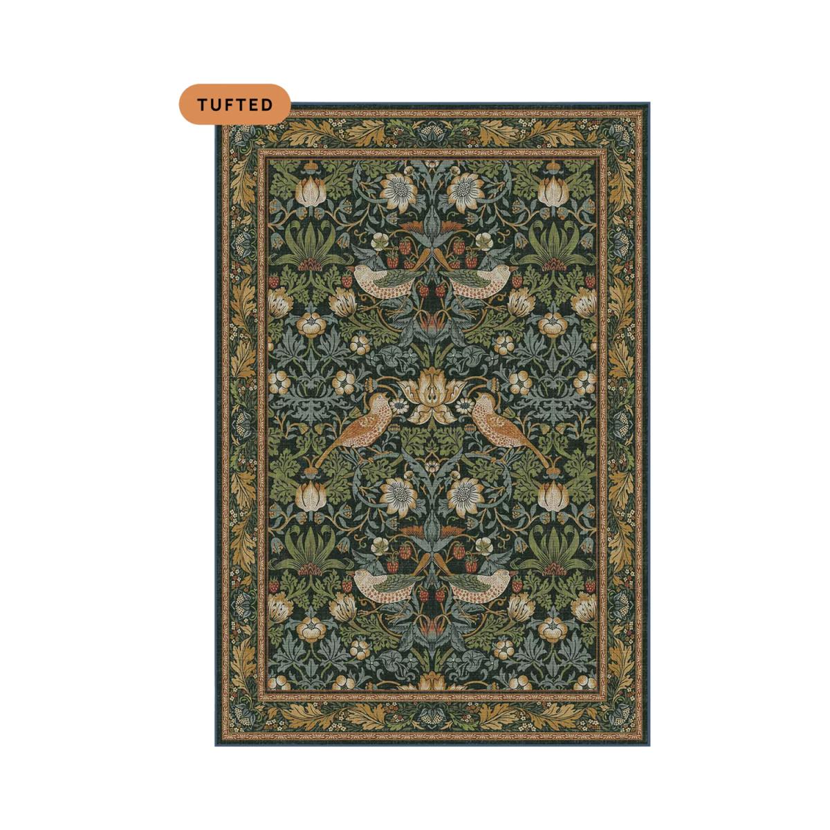 Step into Kelmscott Manor's garden with the Strawberry Thief rug, part of a collaboration between Ruggable and Morris & Co. A direct translation of William Morris's recognisable block print textile, this rug depicts Morris's thrushes stealing fruit from his kitchen garden. When it comes to washable rugs, Ruggable stands out from the pack. Thoughtfully designed and created to withstand whatever life throws at them: dirt, dust, spills, and even pet accidents. The rugs are fully machine washable, making it easy and affordable to keep them clean. The low-pile, flatwoven washable rugs feature a non-toxic, water-resistant barrier that shields your floors from everyday stains, spills, and unwanted odours. The rug pads feature non-slip latex-free backing to keep your rug in place. Rugs look new again after each wash and they have water-resistant protection that doesn't deteriorate after washing. The 2-piece system allows the non-slip grip to stay out of the washing machine and your rug to stay in place. Ruggable rugs are pet-friendly, kid-friendly, and life-friendly. No stress over spills, soft for tiny toes & paws, and safe & non-toxic.