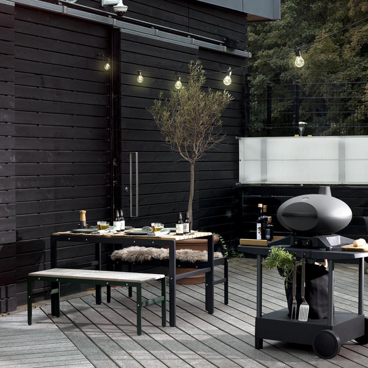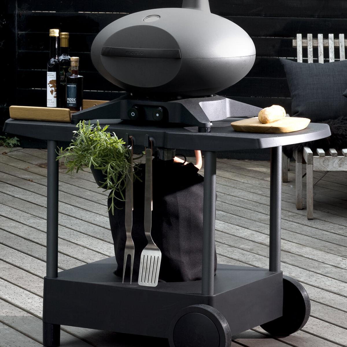 Enhance your outdoor kitchen space with this Tavolo table from Morsø. Crafted from powder coated steel with a plastic table top, it is complete with plenty of space to neatly store a gas cylinder and hooks on the front for hanging utensils. Suitable for the entire Forno gas family, this mobile table features two wheels so you can get your grill on wherever you fancy.