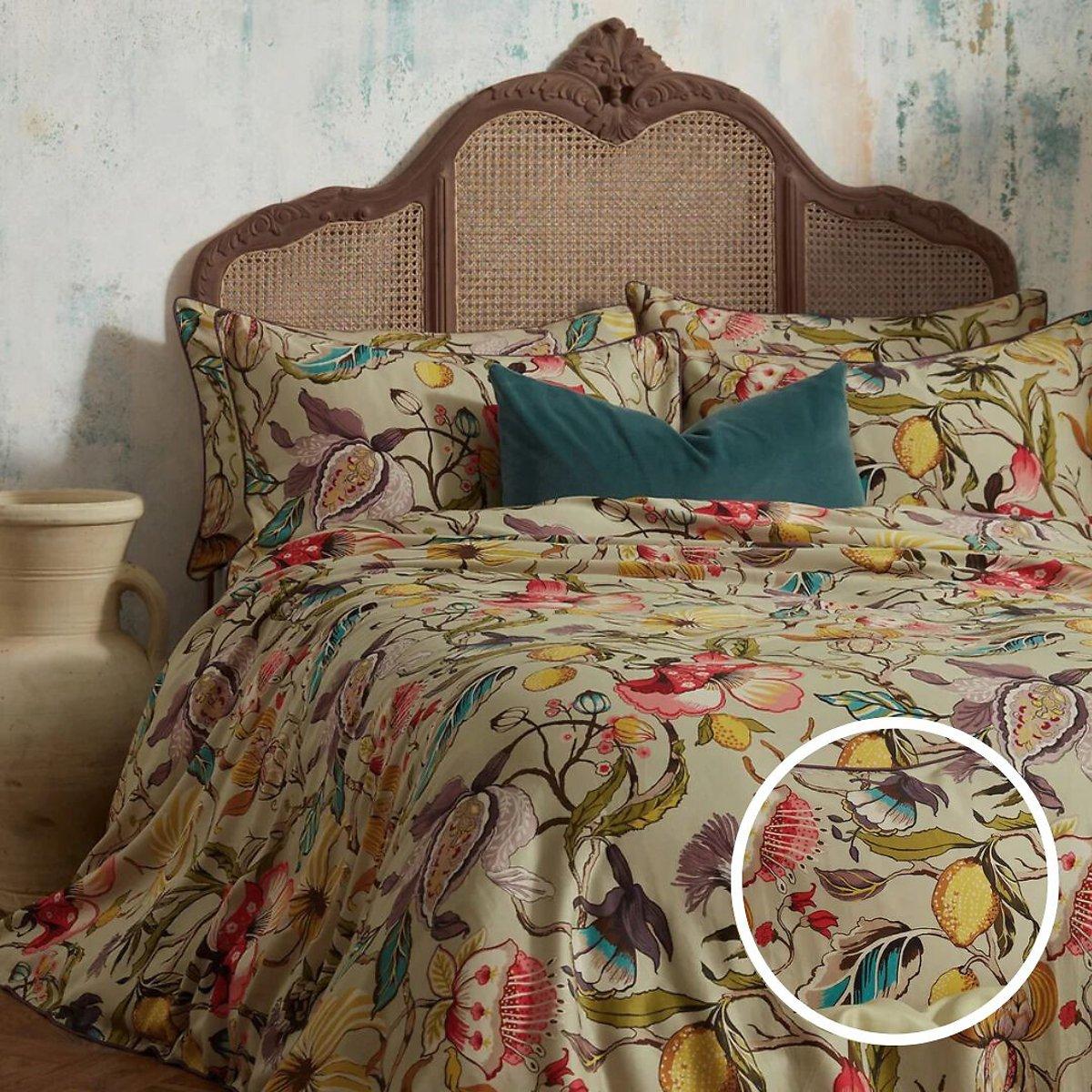This timeless print was created as a tribute to Edinburgh Weavers pioneer Alastair Morton to celebrate the company’s 90-year anniversary. Morton’s bold and daring art is paired with EW’s classic signature floral style to celebrate our creative past while looking confidently to the future. It is boldly printed , featuring vibrant florals set on a fresh natural background. Digitally printed onto a luxury 200 thread count cotton sateen and finished with an exquisite contrast piping , creating a visually exciting pop of colour to accentuate the front design. The 100% cotton sateen reverse creates a tempting, luxurious space to return to at the end of each day. Additional pillowcases are available for a more layered appearance. Please note that all sets come with a Duvet Cover and 2 Pillowcases. Product Dimensions:Double: 200x200cm. King: 230x220cm Super King: 260x220cm. Composition: 100% Cotton. This product will be dispatched by one of our trusted suppliers. You’ll be contacted by their selected courier about your delivery. RIVAH01