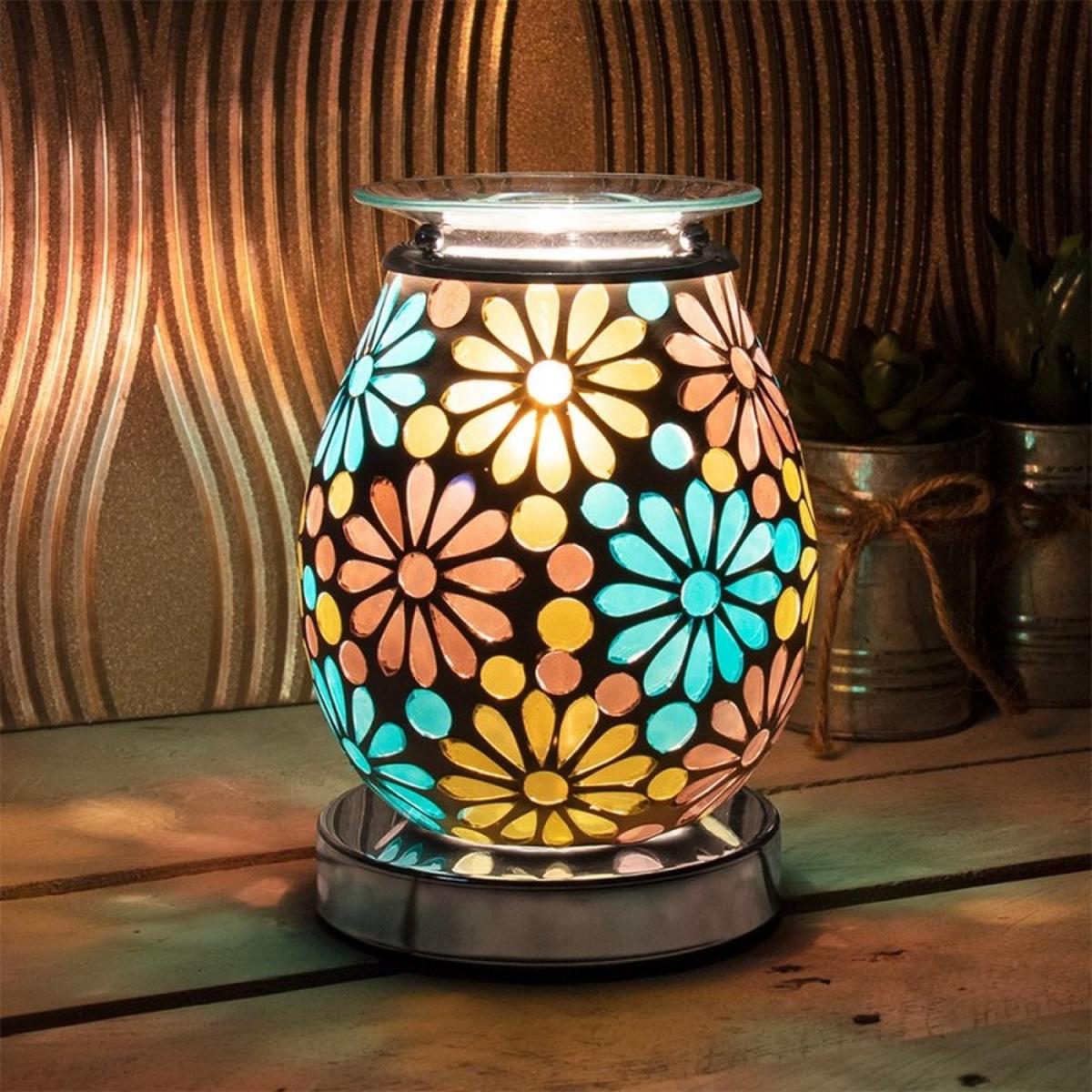This Stylish Flower Mosaic Oil Burner / Wax Melter Will Add A Touch Of Elegance To Any Home. Modern Mosaic Design Wax/Oil Warmer, A Fantastic Modern Style For Your Stylish Home. Touch Sensitive 3 Setting UK Mains Powered. With All Essential Oils, Please Take Care To Use Safely and To Only Use Oils Appropriate For The Environment (Children, Pets etc...).