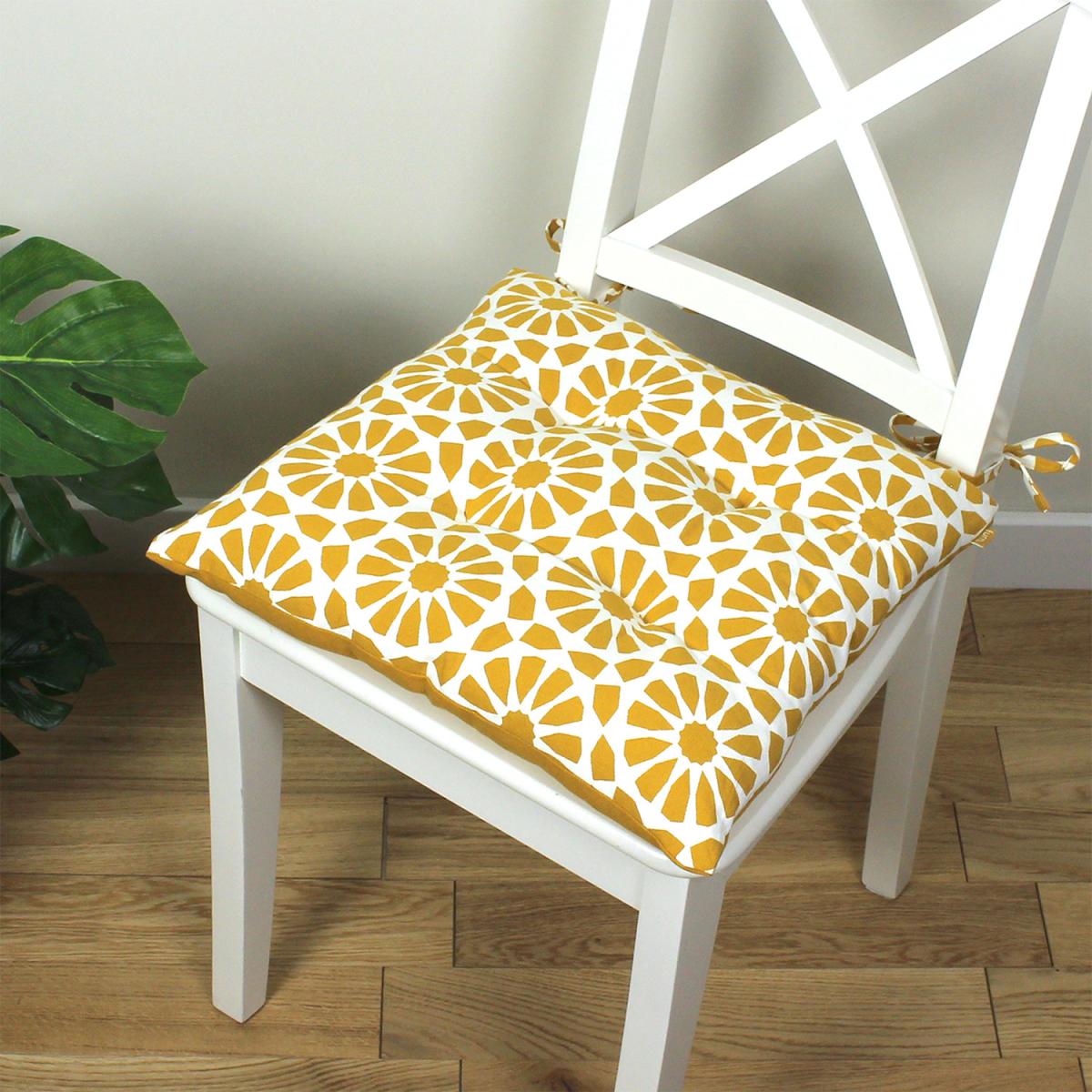 I love these bright yellow seat pads because they add a lively splash of colour that works well in both modern and eclectic interiors. The geometric twin pack is versatile - they’re great for updating dining chairs, kitchen stools, or even outdoor furniture, providing both comfort and style. Pair them with neutral tones for a pop of colour, or mix with other bold patterns for a playful, contemporary look. Practical styling tips include tying them to chairs with the fabric ties for a neat finish, and using them to create a coordinated look with other yellow accessories or soft furnishings in the room. They’re an easy and cost-effective way to refresh your space while keeping seating comfortable.