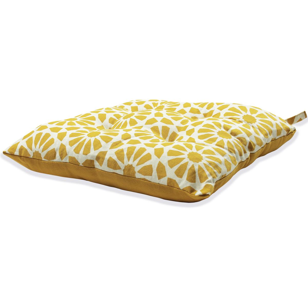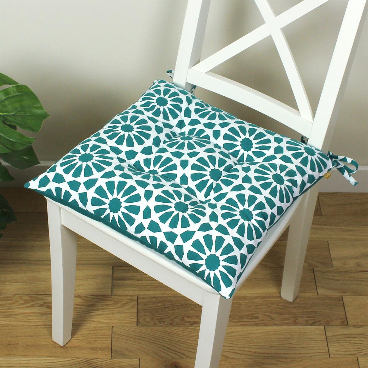 The perfect solution to a pop of colour and visual texture. This floral, geometric seat pad will be the comforting touch to any dining chair.