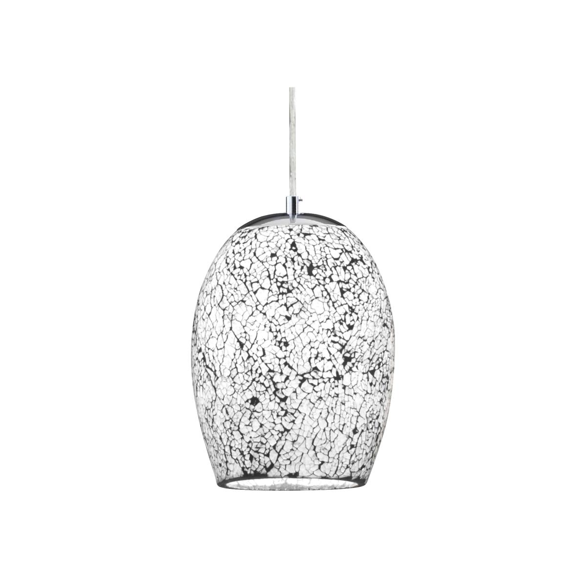 The white mosaic glass pendant ceiling light with chrome trim makes a stunning centrepiece for any bedroom, living room, dining room or kitchen ceiling. The ornate white Crackle glass effect is a modern trend combining an elegant distinction with stunning good looks, and the oval shaped pendant lights creates a beautiful lighting effect when illuminated. The wire satin suspension allows you to adjust the fitting to the perfect ceiling height.