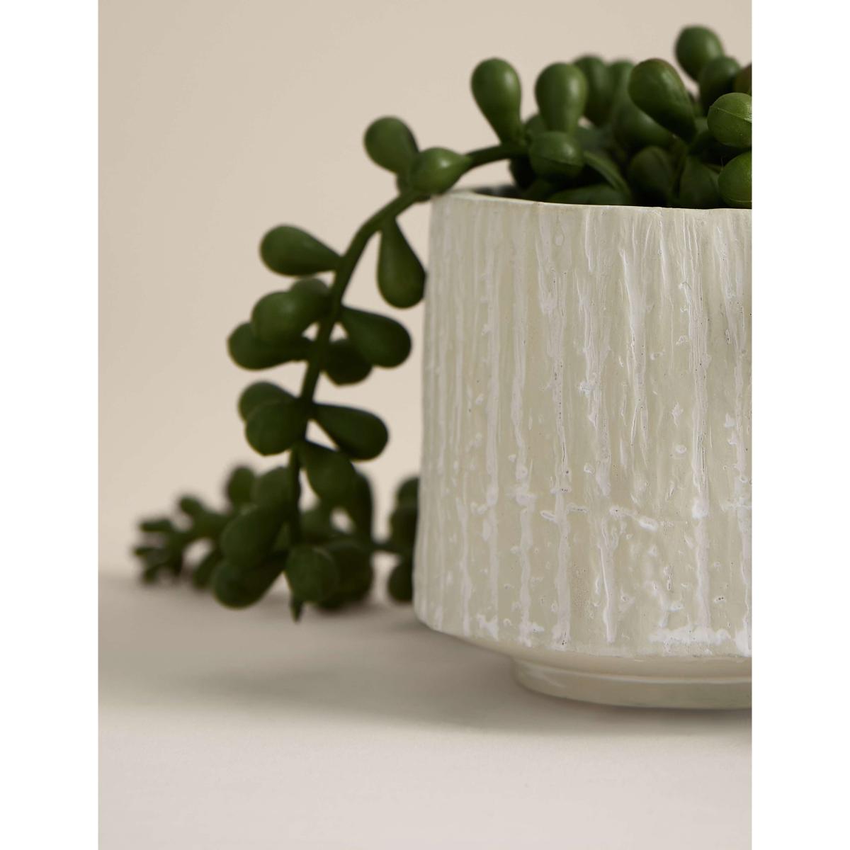 Moss & Sweetpea Artificial Baby String Of Pearls in Ceramic Pot - White, White