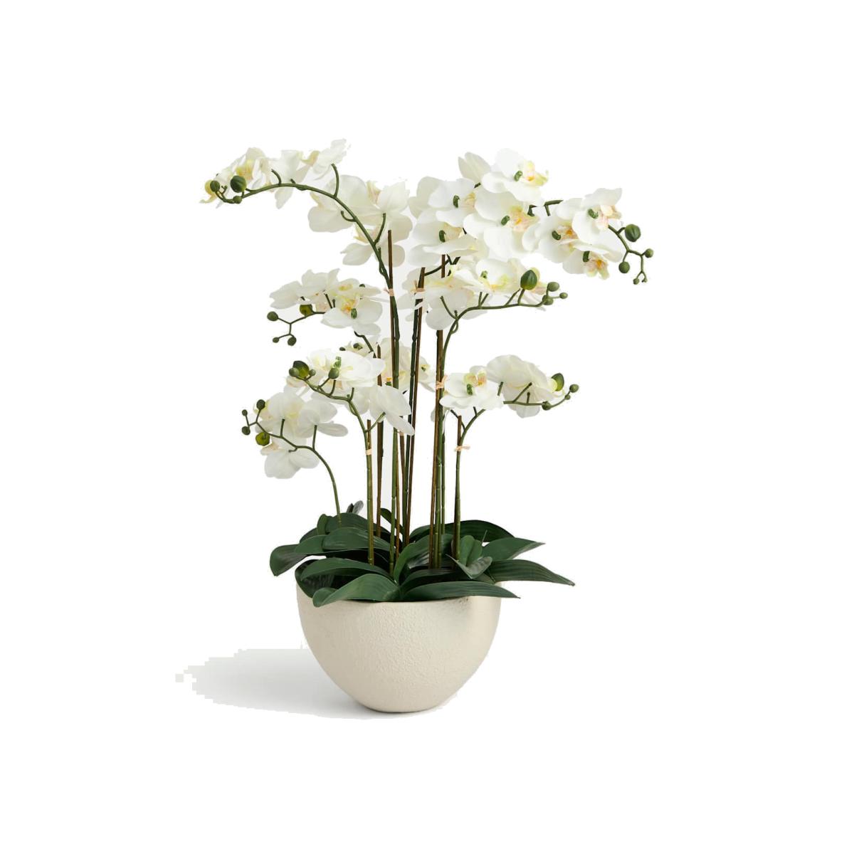 Moss & Sweetpea Artificial Extra Large Orchid in Ceramic Pot - White, White