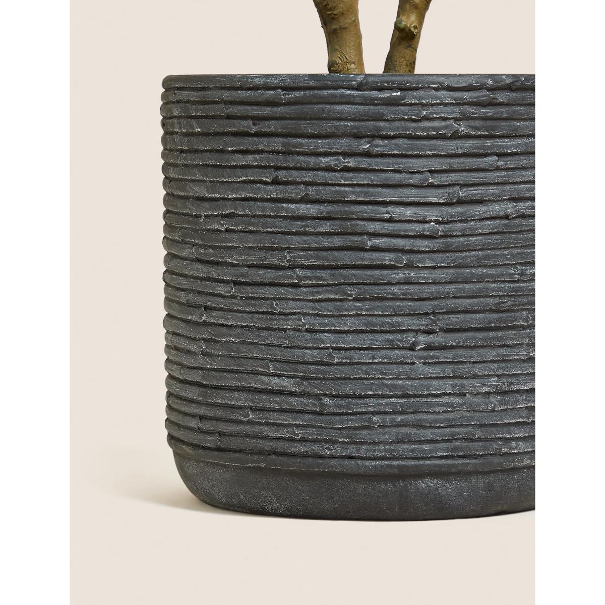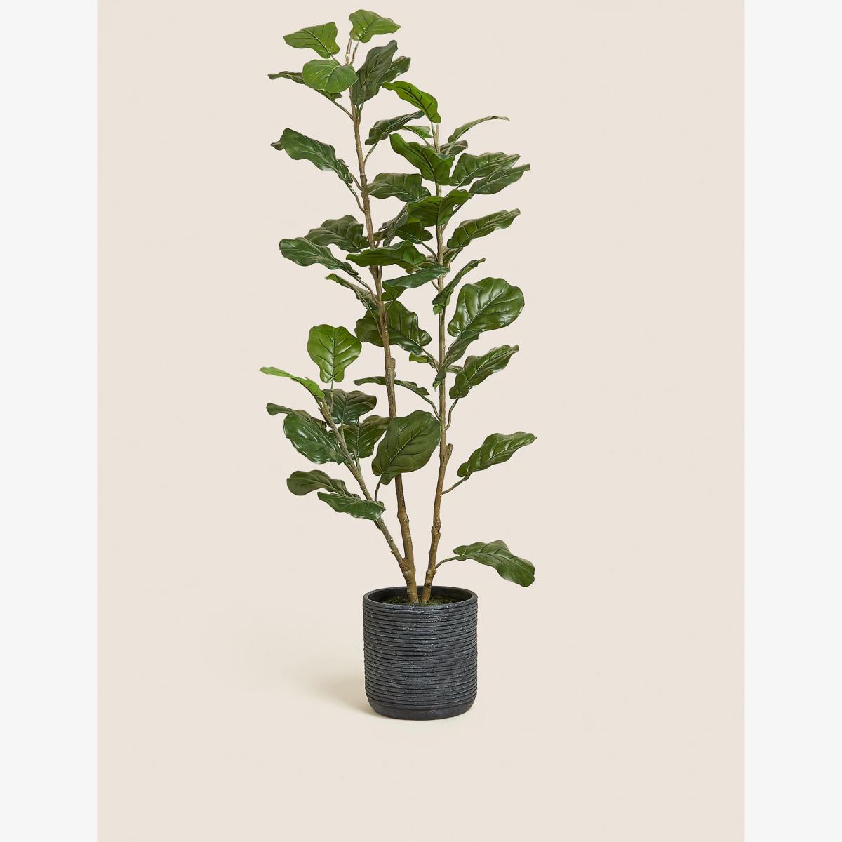 Bring the outdoors in with this artificial potted fiddle leaf tree. It's housed in a ridged ceramic pot for a contemporary finishing touch.