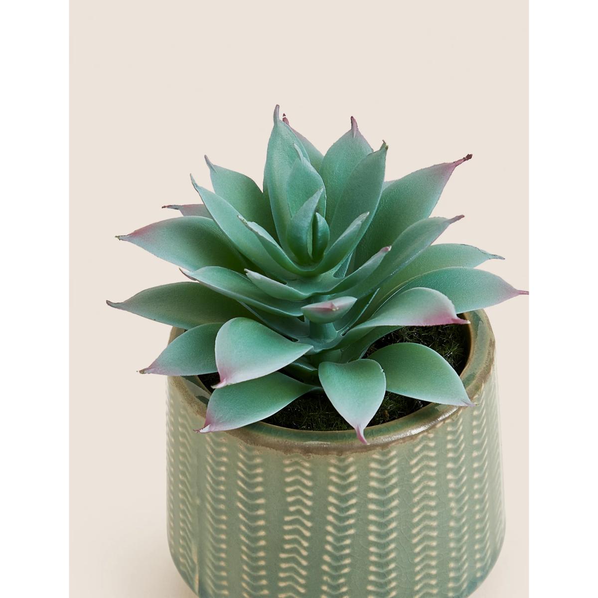 This artificial mini succulent is an easy way to bring some greenery to your interior. It comes in a ceramic pot with a stylish chevron pattern.