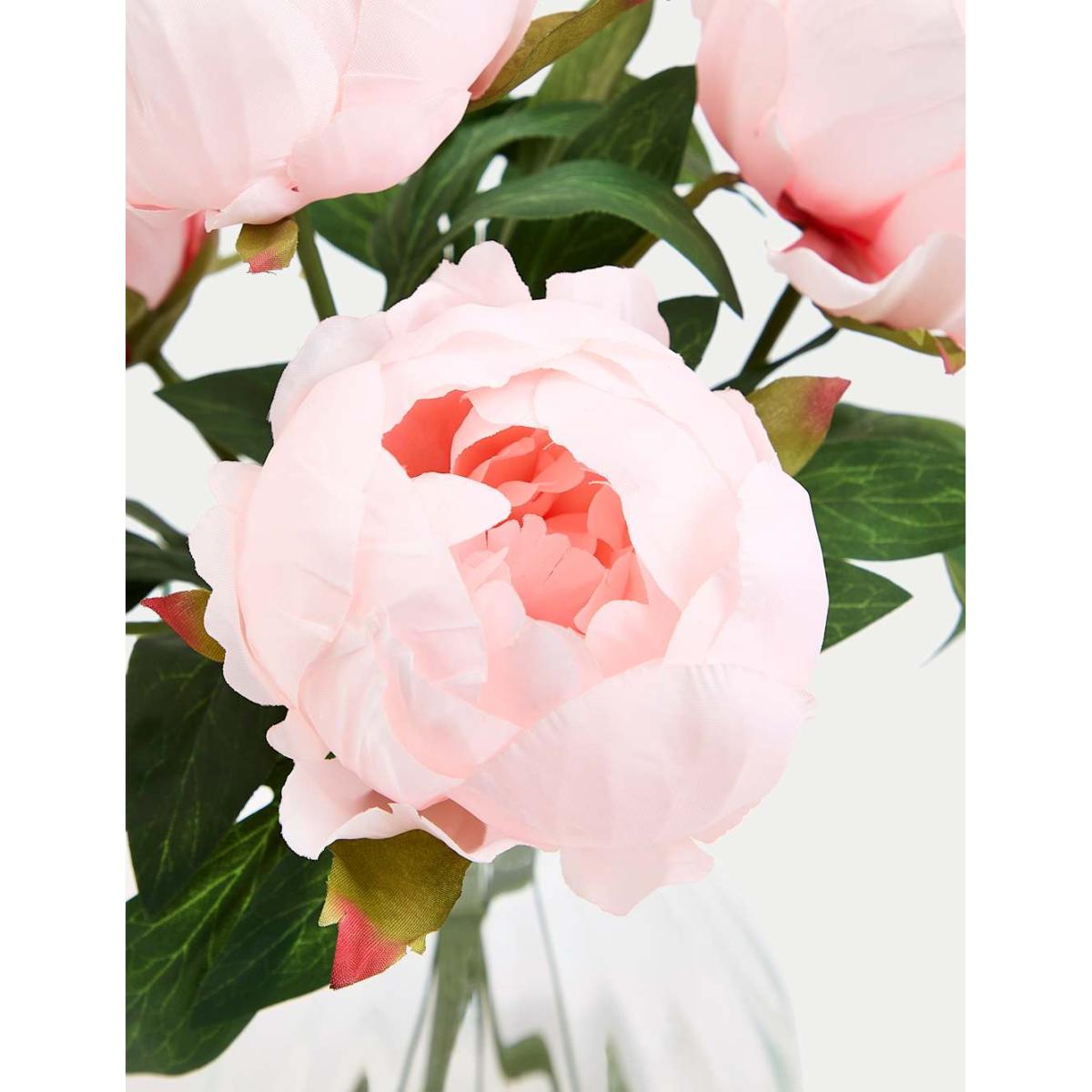 Enjoy the beauty of peonies all the year round with this stylish arrangement from our Moss & Sweetpea range. The artificial blooms are presented in a scalloped glass vase.