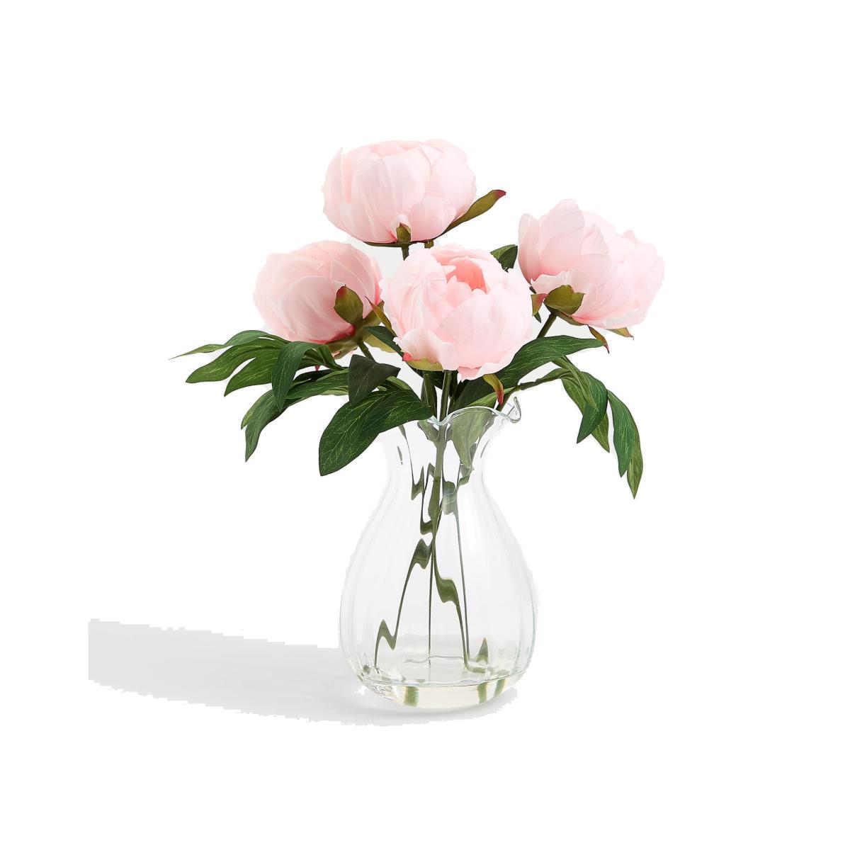 Moss & Sweetpea Artificial Peony Arrangement in Scallop Vase - Pink, Pink