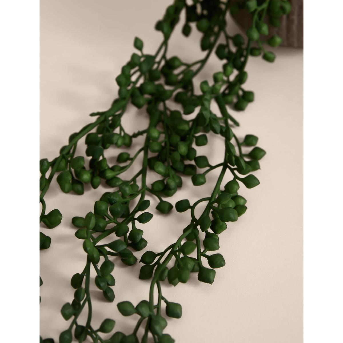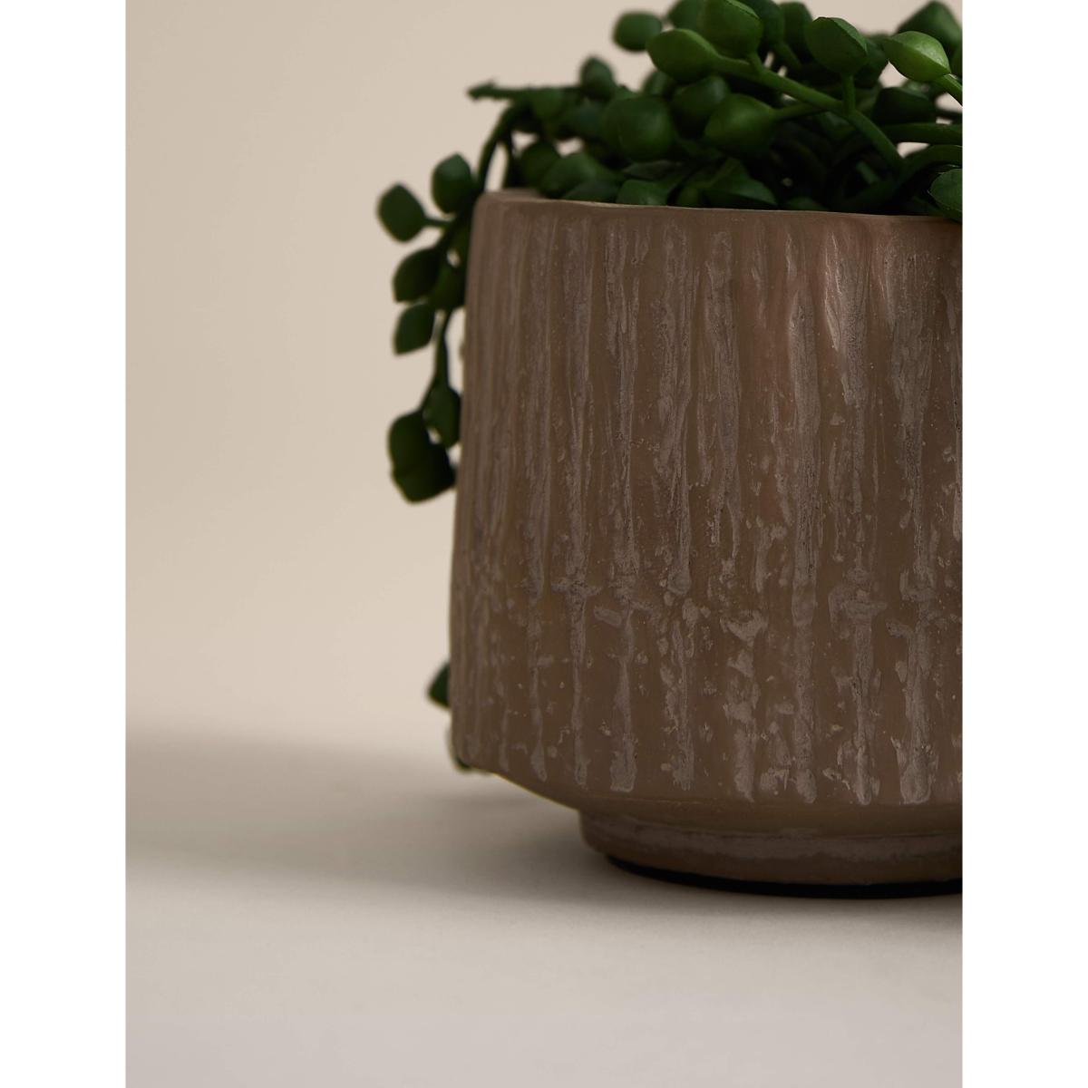 Enjoy the beauty of string of pearls all year round, with our artificial version. It comes in a textured ceramic pot and has a trailing design that looks great displayed on shelves or sideboards.