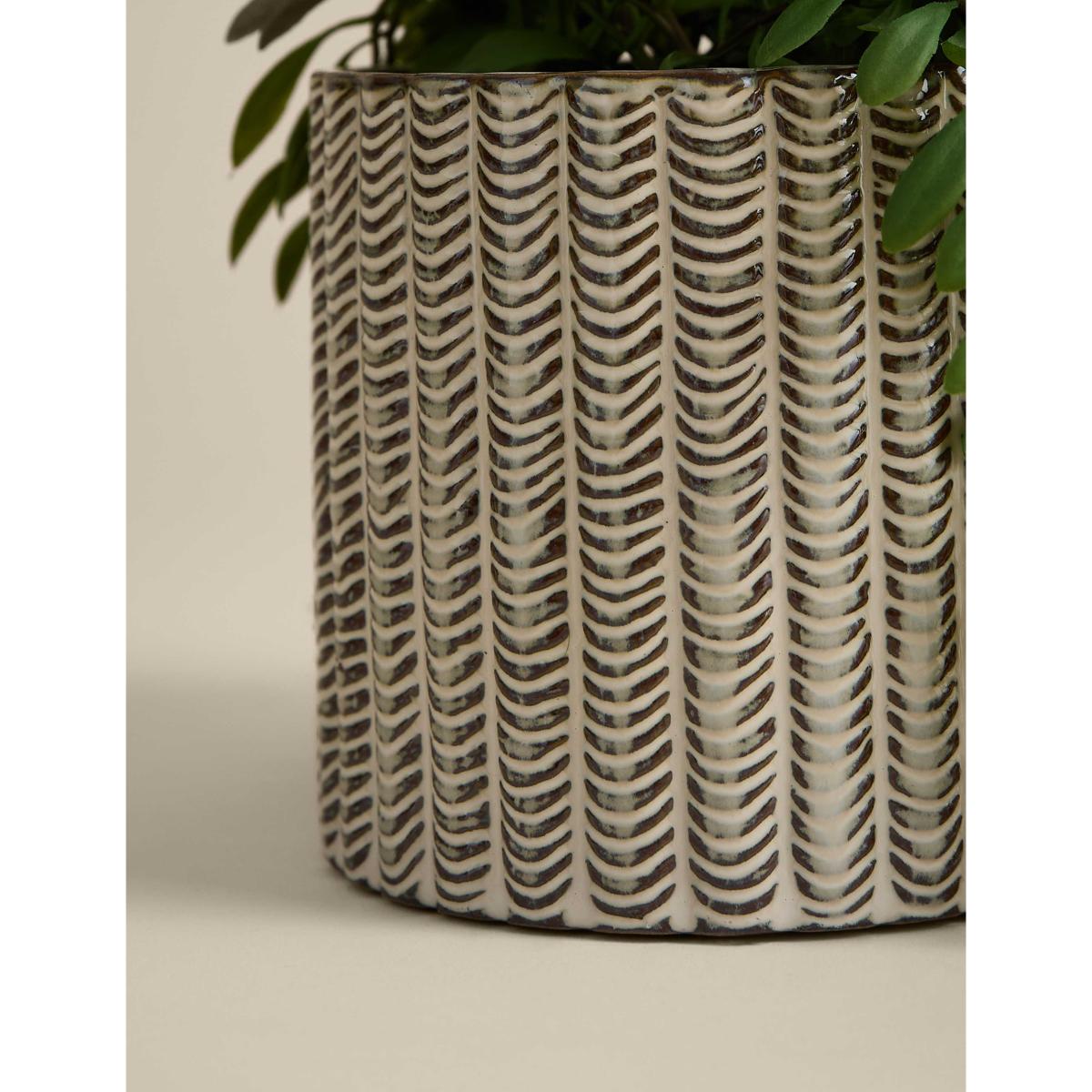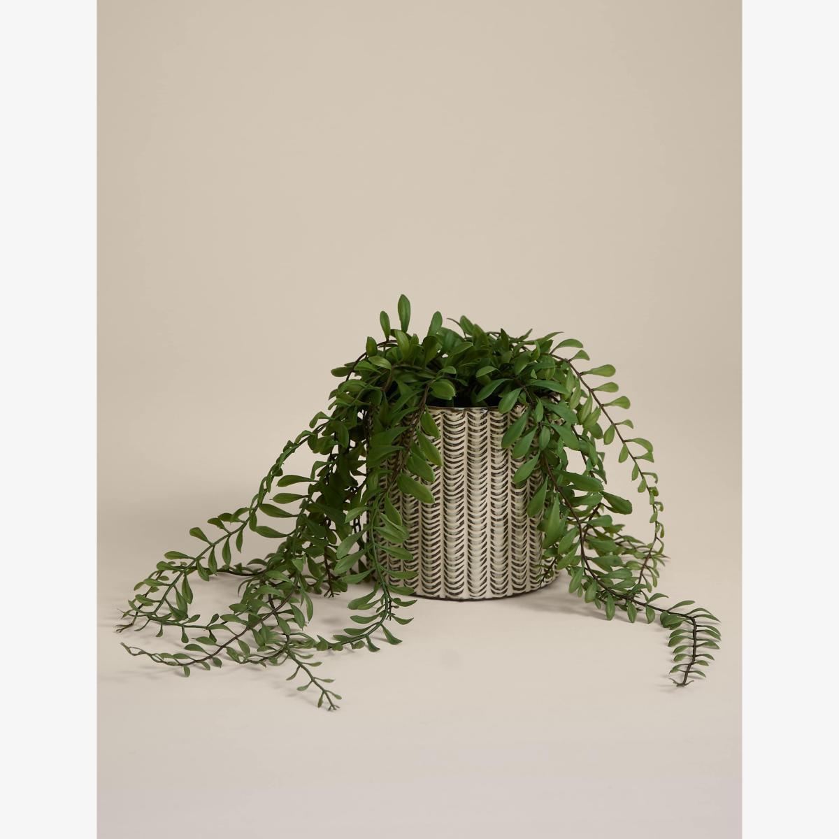 This artificial trailing fern is so realistic, only you will know the difference. It's presented in a stylish ceramic pot for easy display. A textured pattern on the sides of the vessel creates an artisanal effect.