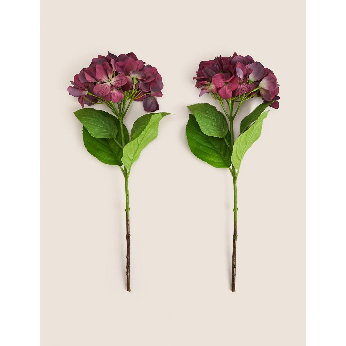 Add rich colour to your flower arrangement with these artificial hydrangeas. The set includes two single stems, both with real-touch petals for an authentic look and feel.