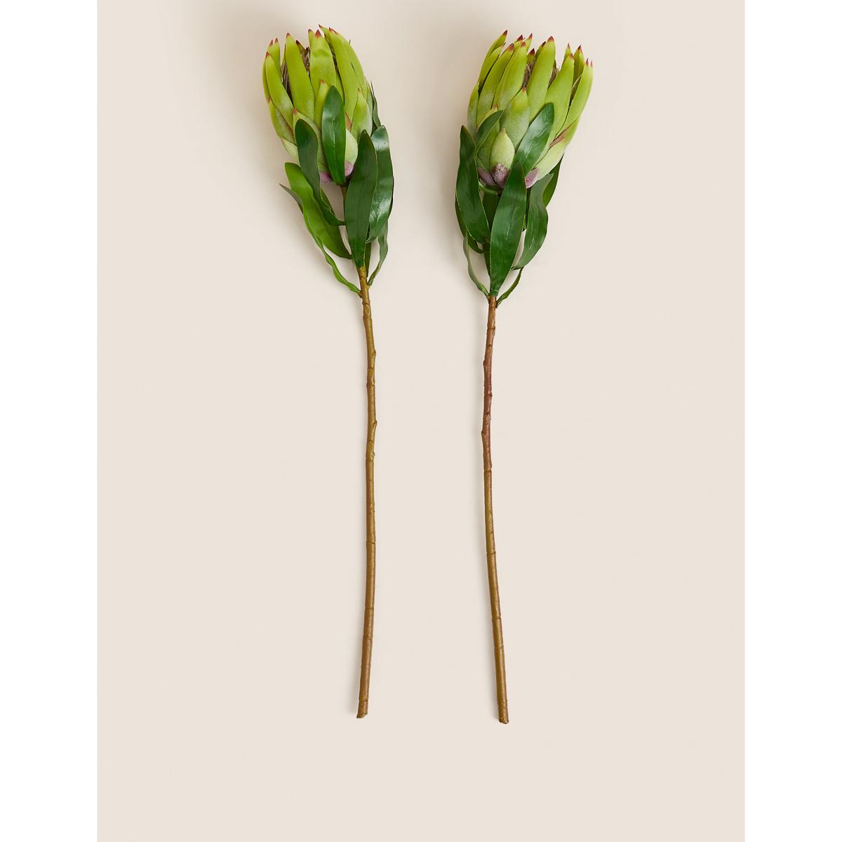 Moss & Sweetpea Set of 2 Artificial Protea Single Stems - Yellow, Yellow