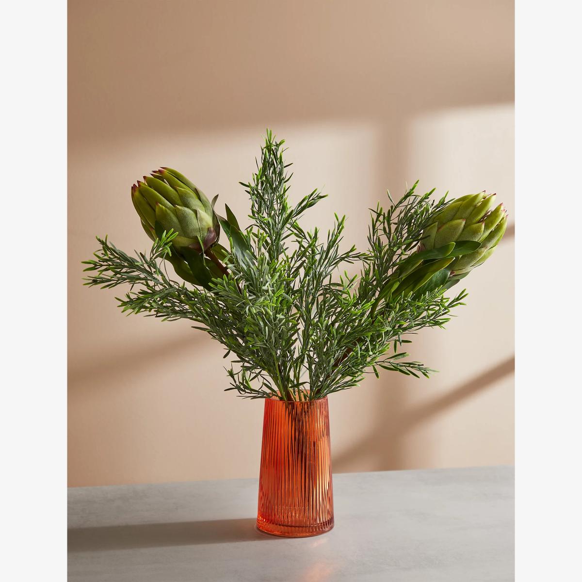 I really like this moss and sweetpea set because of its vibrant yellow tone, which adds a cheerful touch to any space. These artificial protea stems work well in both contemporary and rustic interiors, providing a pop of colour without the fuss of fresh flowers. To style them effectively, try placing the stems in a simple, textured vase to enhance their natural aesthetic, or group a few together for a striking centrepiece. They’re perfect for low-maintenance displays in kitchens, bathrooms, or living rooms, and can be easily moved or swapped to refresh your interior look over time.