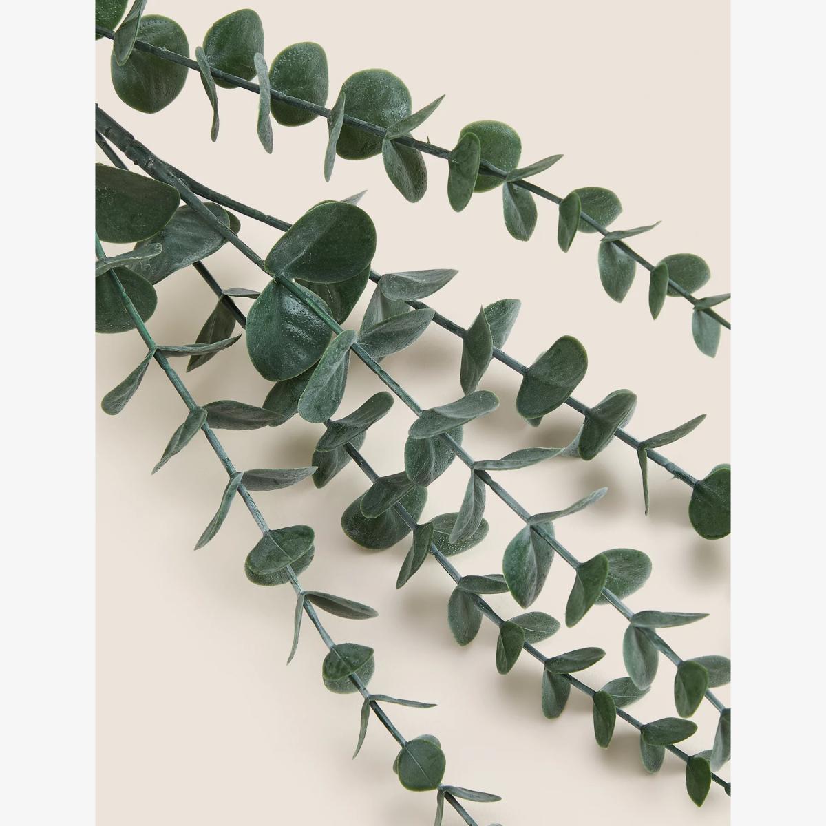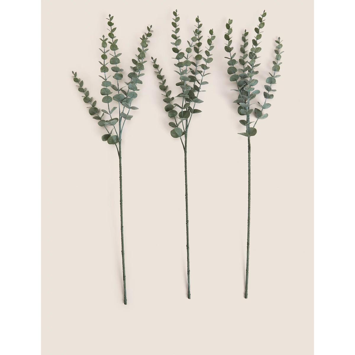 Bring a touch of greenery into your home with this set of three artificial eucalyptus stems. The leaves are waxed for a realistic finish. Arrange them simply for a minimalist look or combine with other artificial flowers and foliage for a bouquet that lasts.