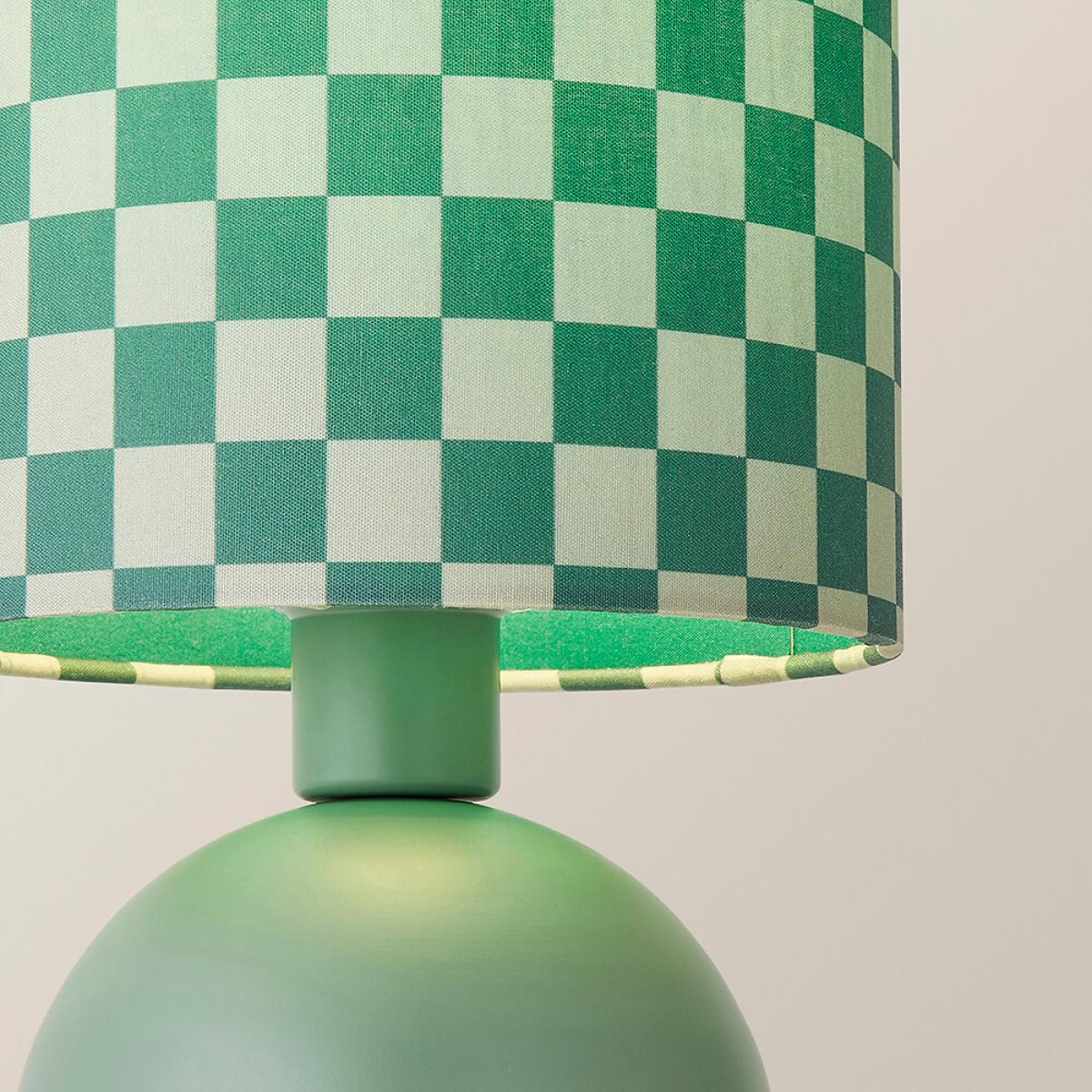 I love this moss green table lamp for its playful yet sophisticated look. The bold checkerboard shade instantly adds a retro-modern vibe, making it a great statement piece for contemporary or eclectic interiors. It works particularly well in living rooms or bedrooms where you want to inject colour and personality without overwhelming the space. To style it effectively, consider pairing it with neutral-toned furniture to let the lamp stand out, or mix with other green accents for a cohesive colour scheme. Practical tips include placing it on a side table or console for ambient lighting, and ensuring the shade’s pattern complements other patterned or textured elements in the room for a balanced finish.