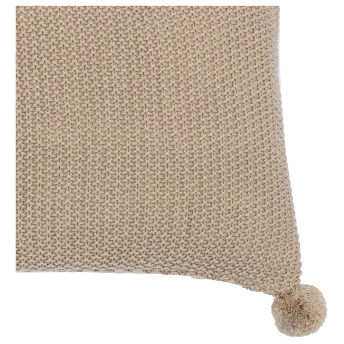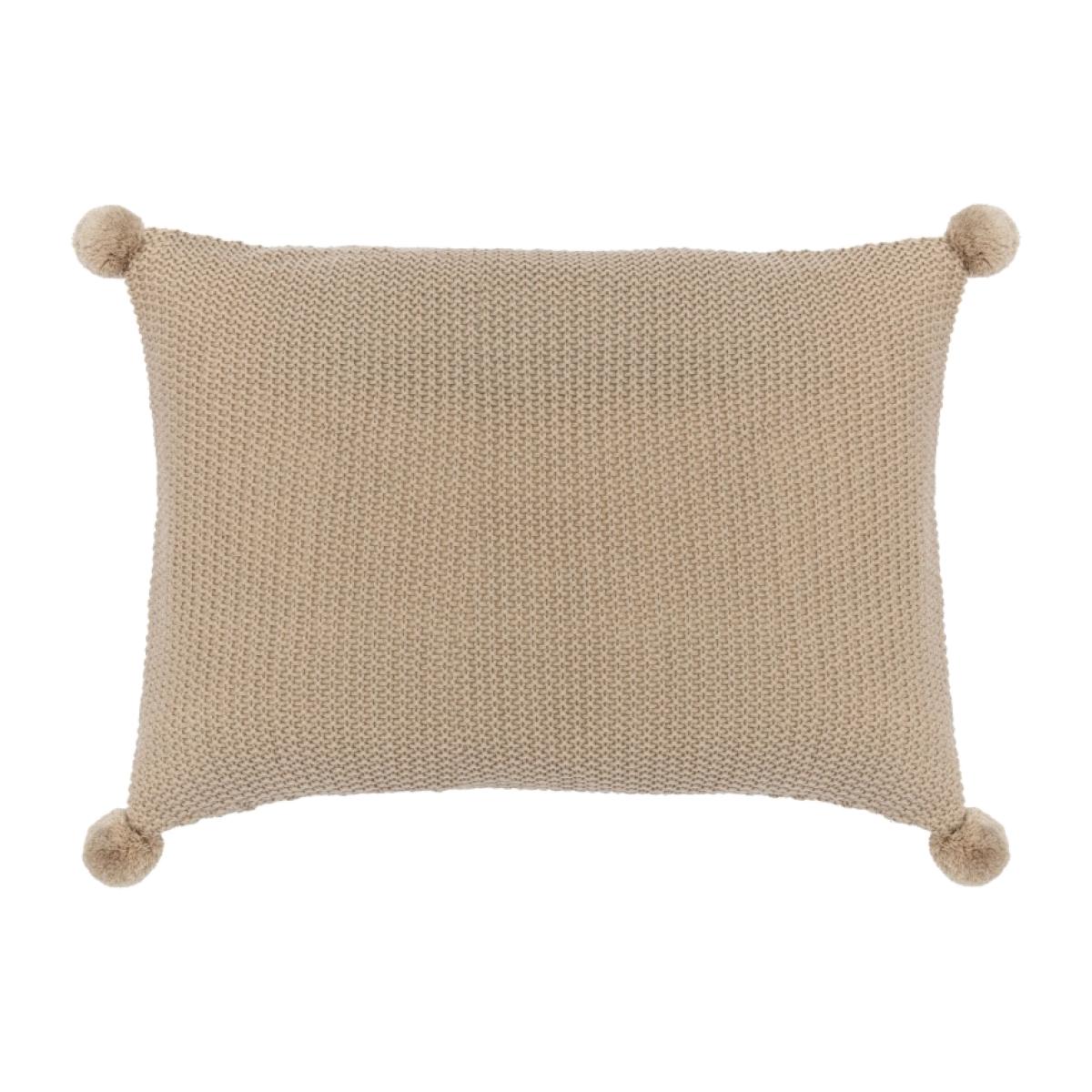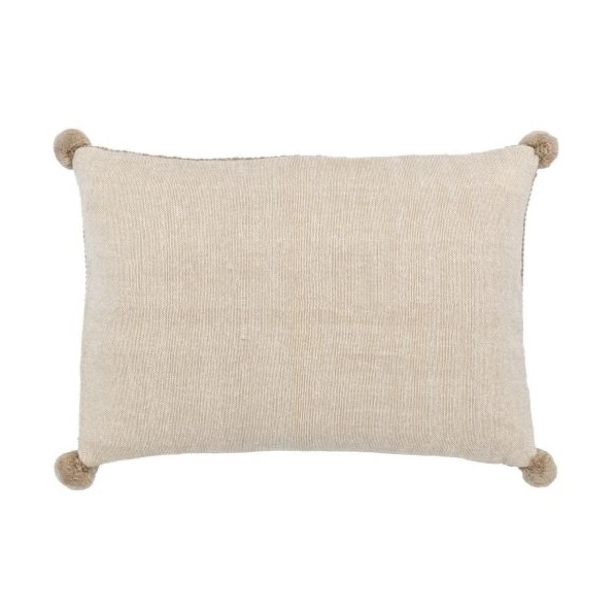 Tactile moss stitched polyester filled cushion in natural tone finished off with 4 fluffy pom poms. Coordinating throw available. Colour - Natural Material - 100% Acrylic Technique - Knitted Fabric Weight - 450 gsm Size - 60cm x 40cm All screens vary in colour reproduction and whilst every effort has been made to display the colour as accurately as possible it is for guidance only.