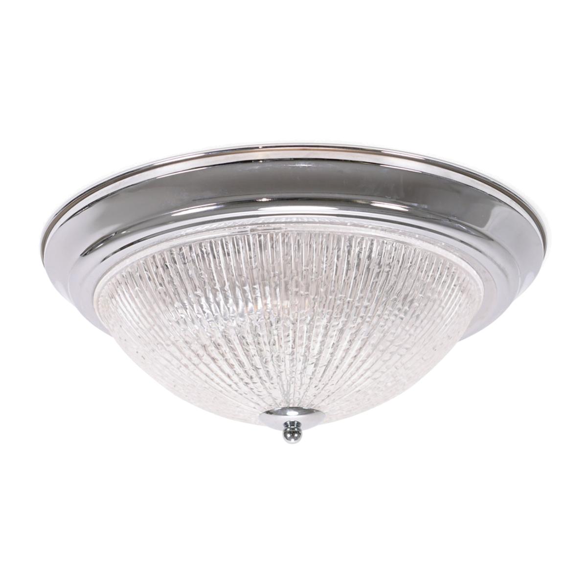 Mossley Clear Ribbed Glass Chrome Flush Ceiling Light with LED Bulbs - Silver
