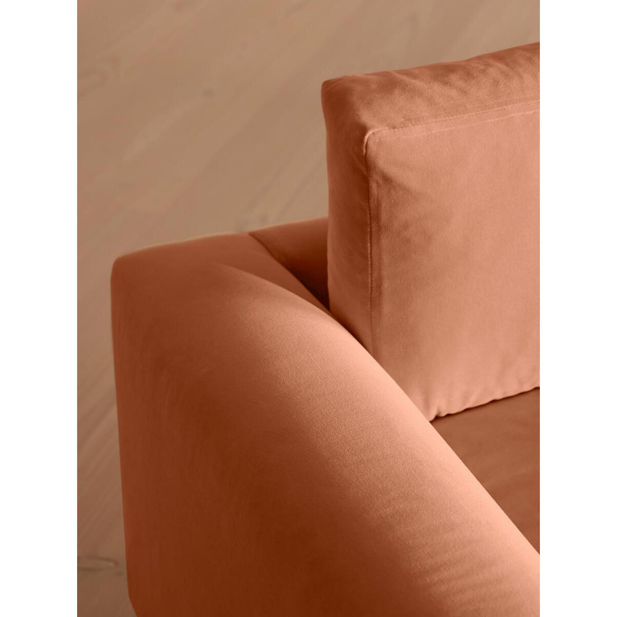 With a low height and deep seat, our Mossley four-seater sofa offers a more laidback aesthetic to your living room, while recreating the mood of Soho House Room with its 1970s-inspired design. Upholstered in rich velvet, it features feather-wrapped foam cushions for further comfort when kicking back and relaxing or socialising with friends. Four-seater sofa Upholstered in cotton velvet Available in other colours and fabrics Low height Deep sit style Feather-wrapped foam cushions Inspired by Soho House Rome