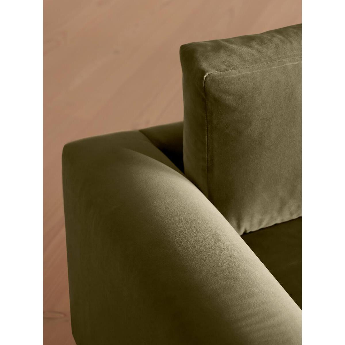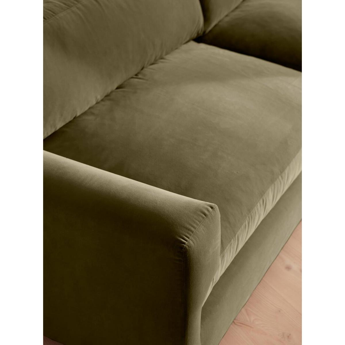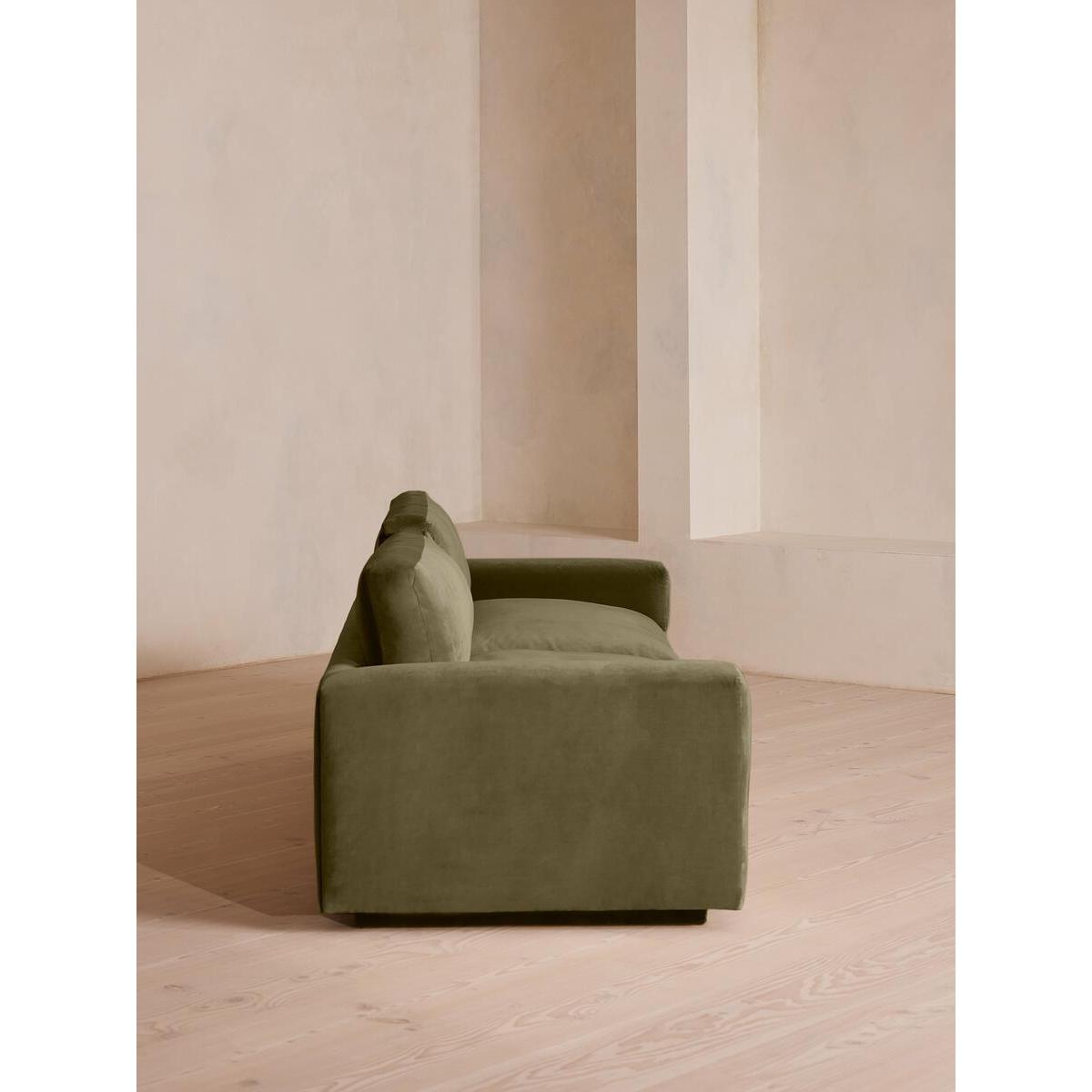 The Mossley four-seater sofa in velvet, olive, is a fantastic choice for adding a pop of colour and texture to a space. I love its versatile silhouette, which works well in both contemporary and classic interiors. The rich olive hue is ideal for creating a cosy, inviting centrepiece in a living room, especially when paired with neutral or earthy tones. For styling, consider combining with brass or matte black accents to enhance its luxurious feel, and keep accessories minimal to let the sofa shine. Practical tips include using light-coloured or patterned throws and cushions to break up the upholstery and add visual interest, making it both a stylish and functional addition to your home.