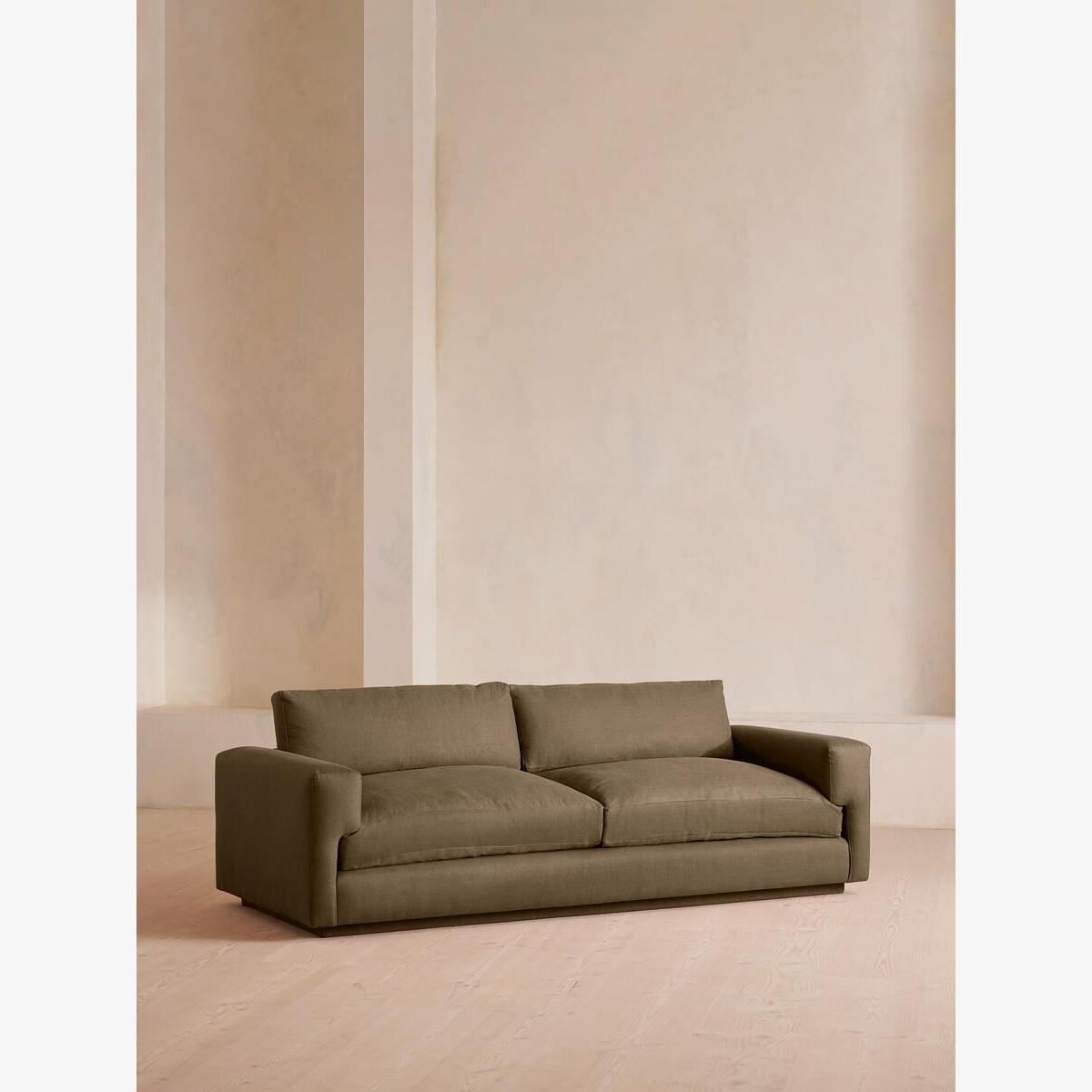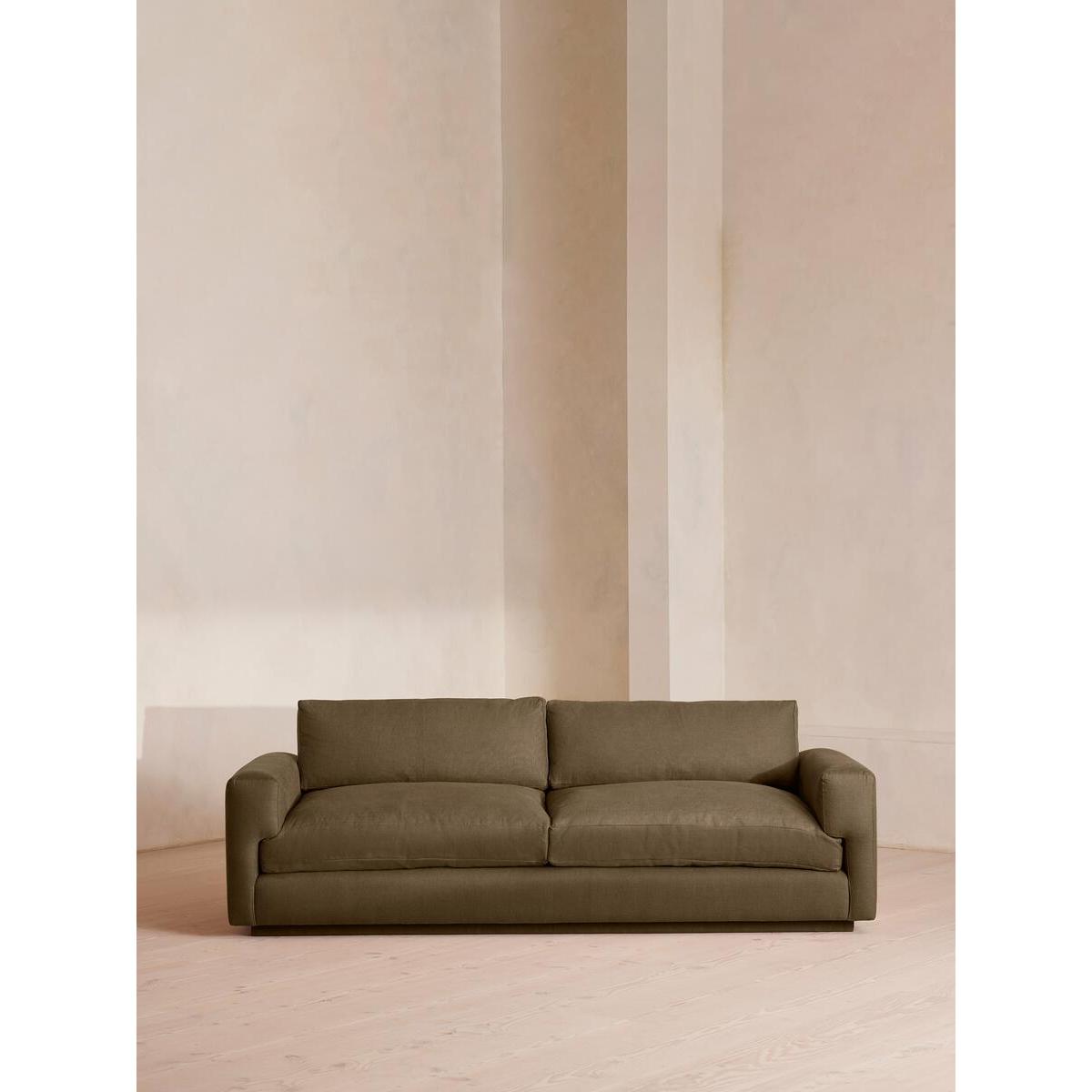 I love this sofa for its versatile, understated style and the relaxed feel it brings to a space. The linen fabric in olive adds a natural, earthy tone that works well in both modern and more classic interiors. It’s perfect for a living room that prioritises comfort and understated sophistication. Styling tips include pairing it with textured cushions in neutrals or muted tones to create visual interest without overpowering the fabric. It also works well with both wooden and metal accents, making it easy to incorporate into various colour schemes and interior styles. Keep accessories minimal for a sleek look, or layer with throws and cushions to create a cosy, inviting vibe.