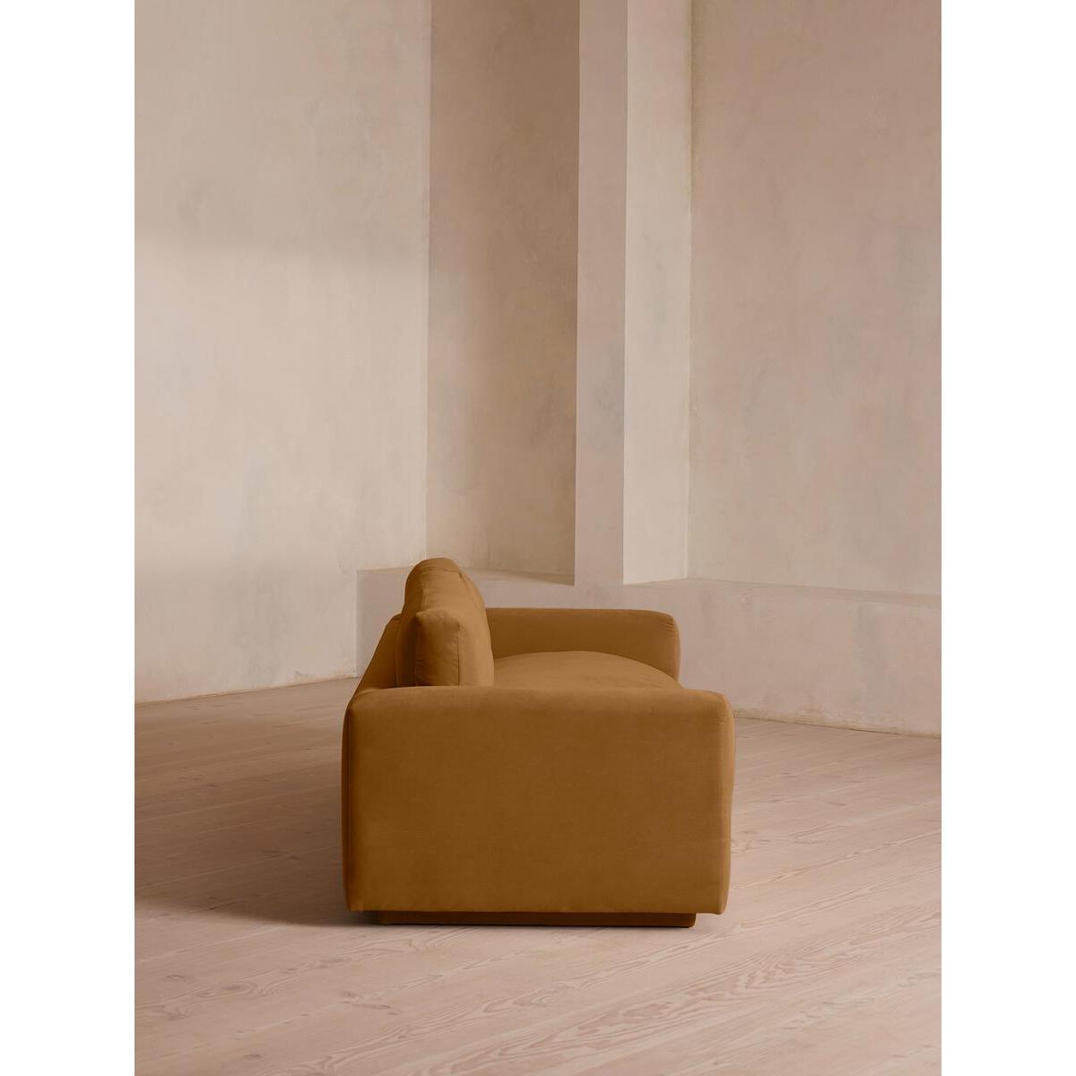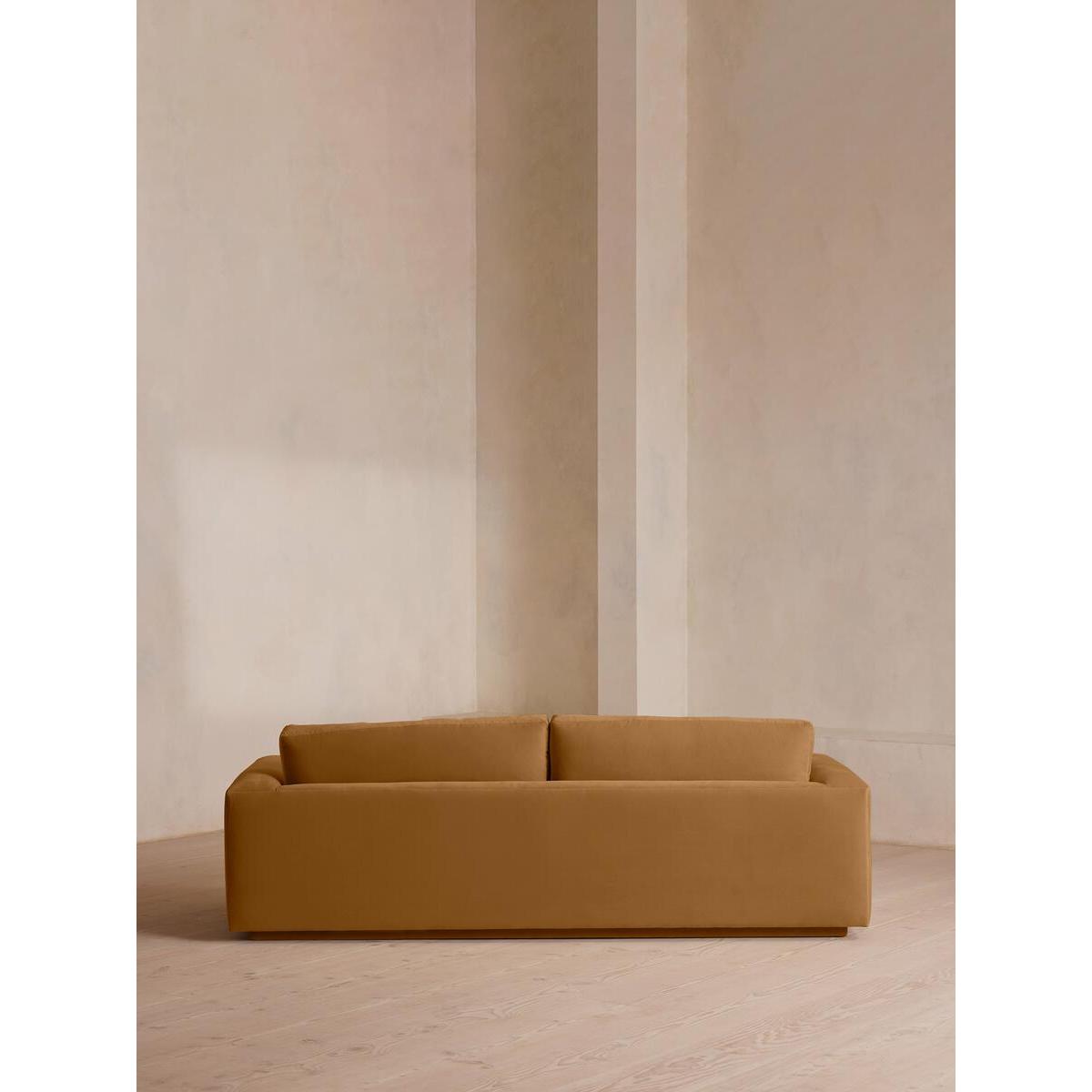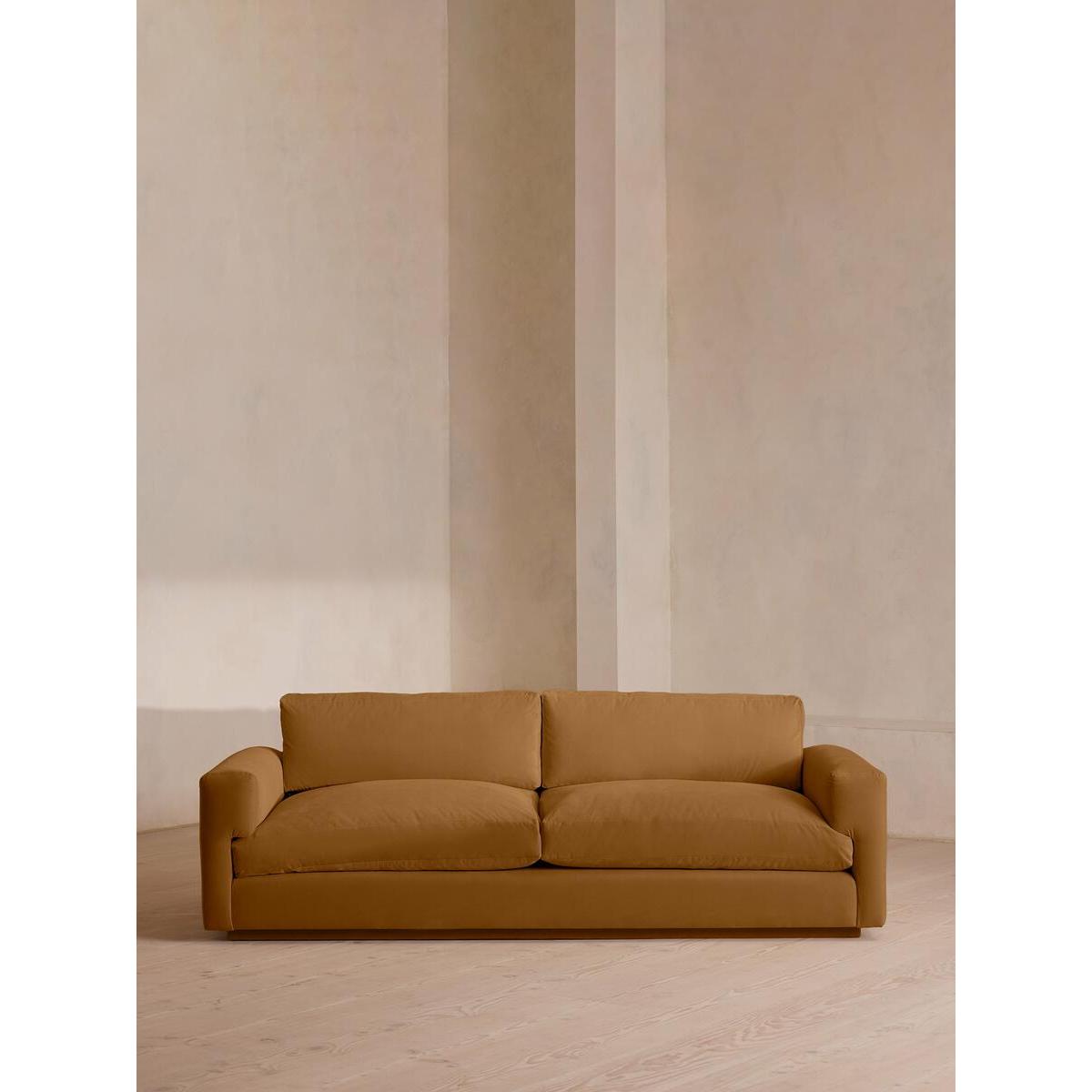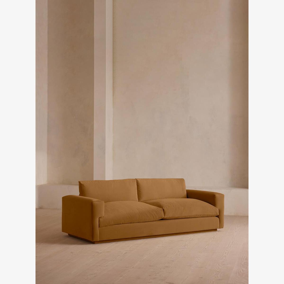 With a low height and deep seat, our Mossley three-seater sofa offers a more laidback aesthetic to your living room, while recreating the mood of Soho House Room with its 1970s-inspired design. Upholstered in rich velvet, it features feather-wrapped foam cushions for further comfort when kicking back and relaxing or socialising with friends. Three-seater sofa Upholstered in cotton velvet Available in other colours and fabrics Low height Deep sit style Feather-wrapped foam cushions Inspired by Soho House Rome